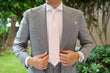 With a slightly shimmering blush finish to the diagonally woven stitch-work, cast against stripes of a matte surface. The Flamenco Blush Pink Striped Tie is proudly presented by the Melbourne based Brothers at OTAA and will get the rest of your ensemble dancing along in perfect sync.