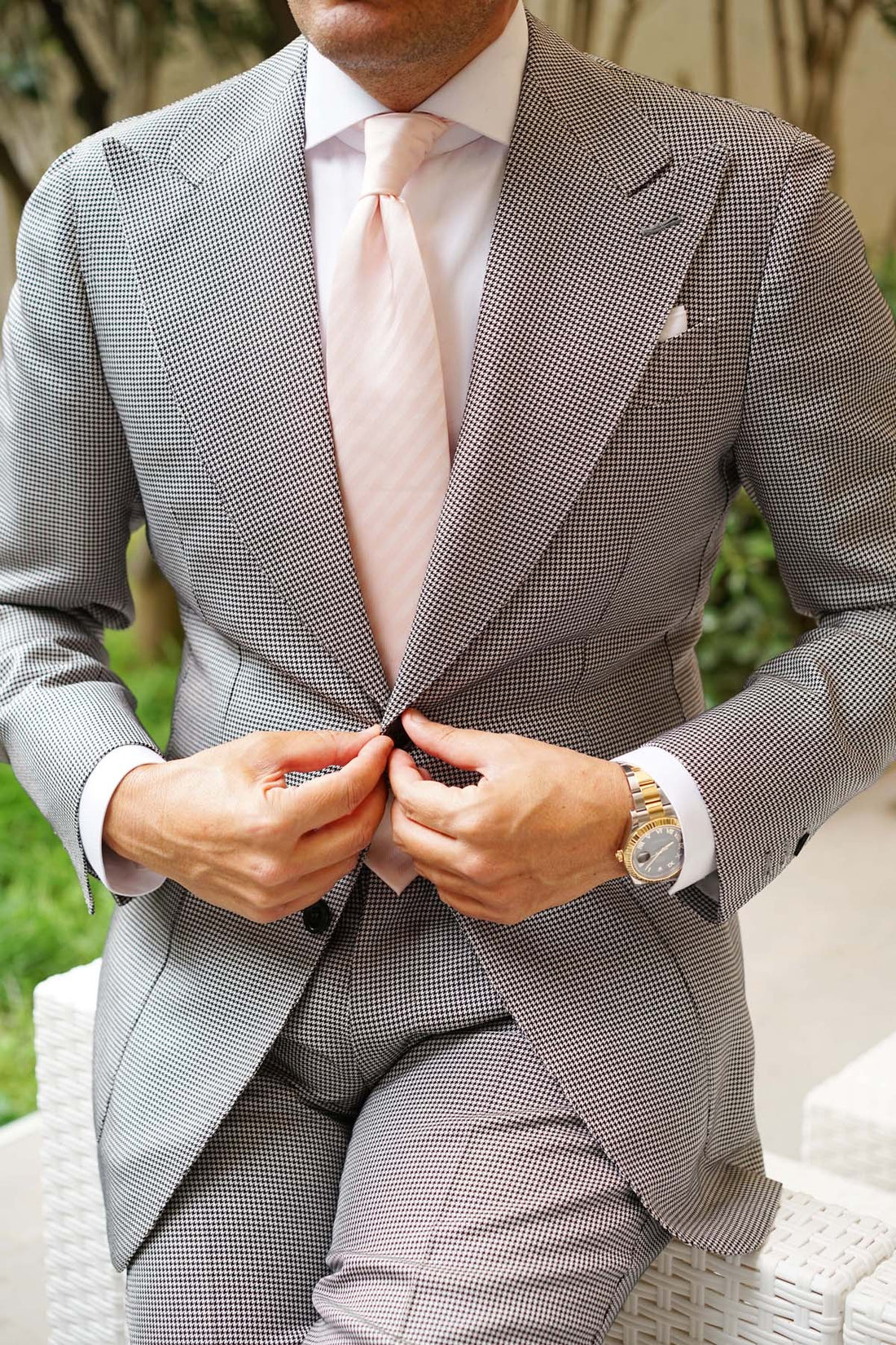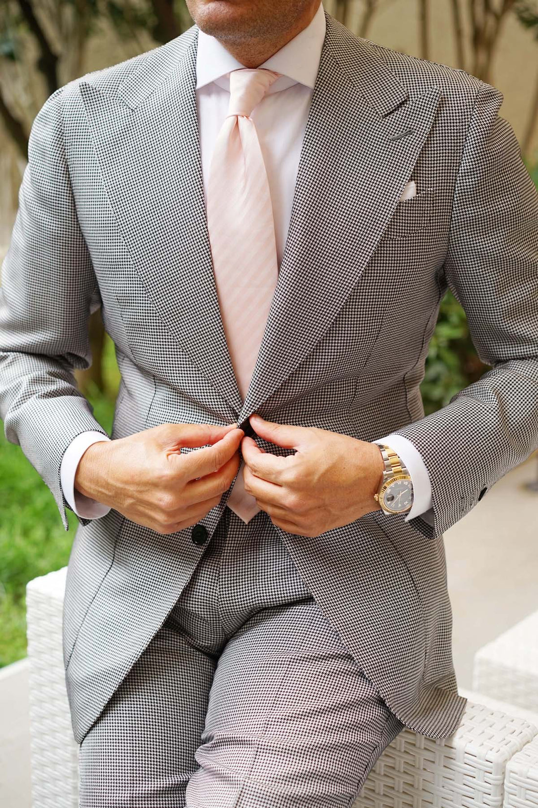 The vivacious Flamenco dance is an old traditional performance with a blend of beautiful guitar falsettos, vocals, and complex solo choreography. Said to have originated in Southern Spain, it captures the fiery passion and beauty of the region and its people. With the Flamenco Blush Pink Striped Necktie, the Brothers have pulled off quite the coup and managed to bottle this passion and fine choreography into the form of this stellar tie.