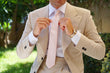 With a slightly shimmering blush finish to the diagonally woven stitch-work, cast against stripes of a matte surface. The Flamenco Blush Pink Striped Slim Tie is proudly presented by the Melbourne based Brothers at OTAA and will get the rest of your ensemble dancing along in perfect sync.
