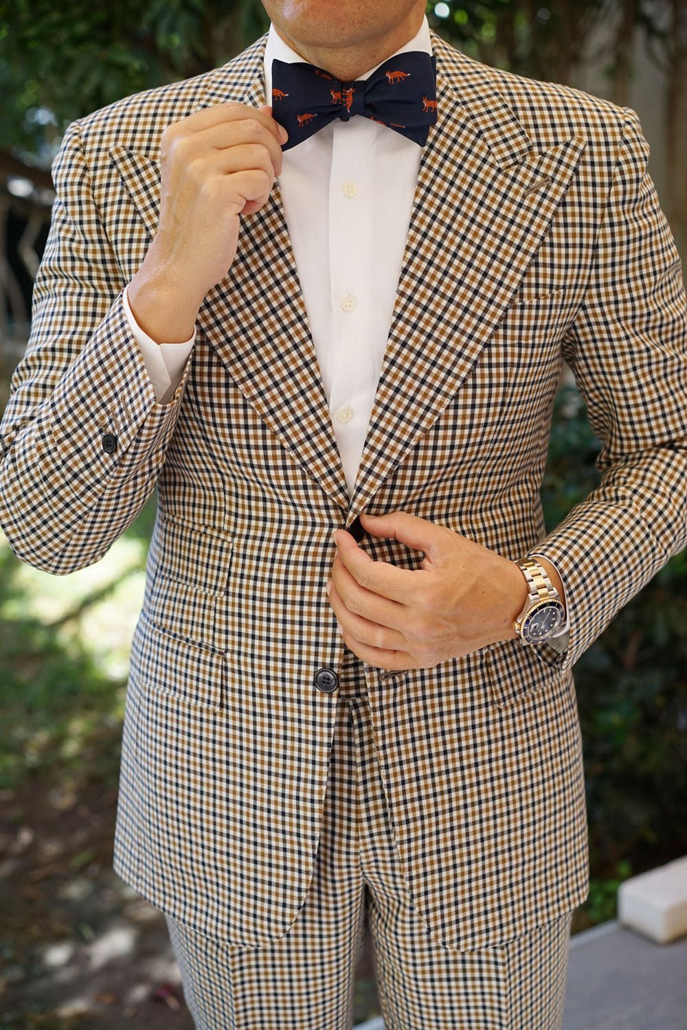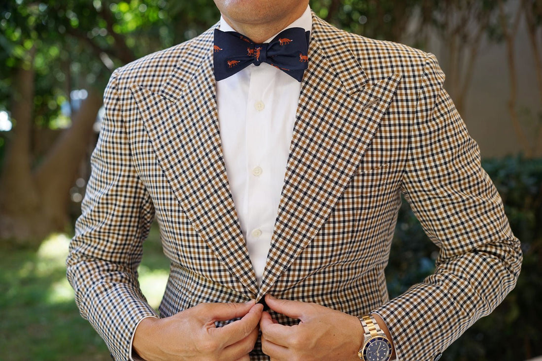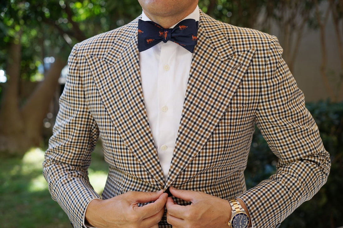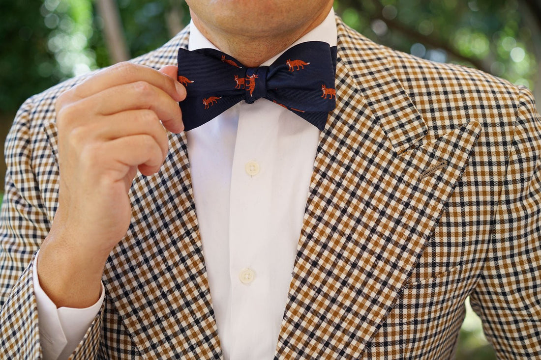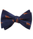 The gently shimmering satin motif of the brocaded fox is artfully woven, with complimentary threads to accentuate the layered textures and depth of the orange coat and lending a sense of dimension to the motif. The horizontally stitched backing of matte navy-blue serves to enhance the centrepiece of the Untied Bow Tie, the Fox itself. Combine your ensemble with this Fox Island Navy Untied Bow Tie to imbue it with maverick charm and sophistication.