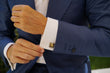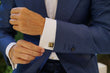 Includes a small cylinder at the back that rotates 90 degrees to hold the cufflink in place