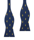 Green and yellow turtles crawl (slowly) across a sophisticated navy blue fabric. Immaculately designed with hand-stitched turtles, this Galapagos Turtle Self Tie Bow Tie is a must-have staple for flamboyant style. Tailored by hand from a fine, woven fabric, this untied bow tie effortlessly marries sophistication with a level of unsurpassed quality. Designed exclusively by the Brothers at OTAA.