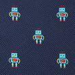 Superbly tessellated with ebullient light blue robots, this boys bow tie features a luxurious navy blue canvas. The light blue, red and yellow accents give a lively staple to pimp up your child’s style. Crafted by hand from a fine, woven blend, this Genesis Robot Boys Bow Tie offers luxurious comfort as well as sleek style. Let him wear it to impress the whole family at your next event. Designed exclusively by the Brothers at OTAA.
