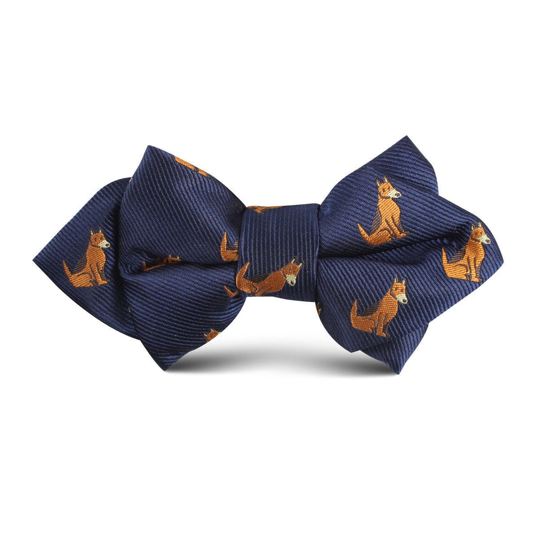 Although German Shepherds are incredibly courageous, devoted and highly intelligent, they enjoy companionship the most and exercise to put their energy and inquisitiveness to work. The German Shepherd Dog Kids Diamond Bow Tie exudes sophistication and is hand cut and sewn on a classic navy backing. Designed exclusively by The Brothers at OTAA.