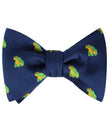 On this design, yellow and green frogs leap across a navy blue fabric. Constructed by hand and cut from a fine, navy woven fabric, this Gero Gero Frog Untied Bow Tie demonstrates an unsurpassed level of quality. Luxuriously tailored and decorated with vibrance, this untied bow tie makes a flamboyant asset for your boardroom and off-duty styles. Designed exclusively by the Brothers at OTAA.