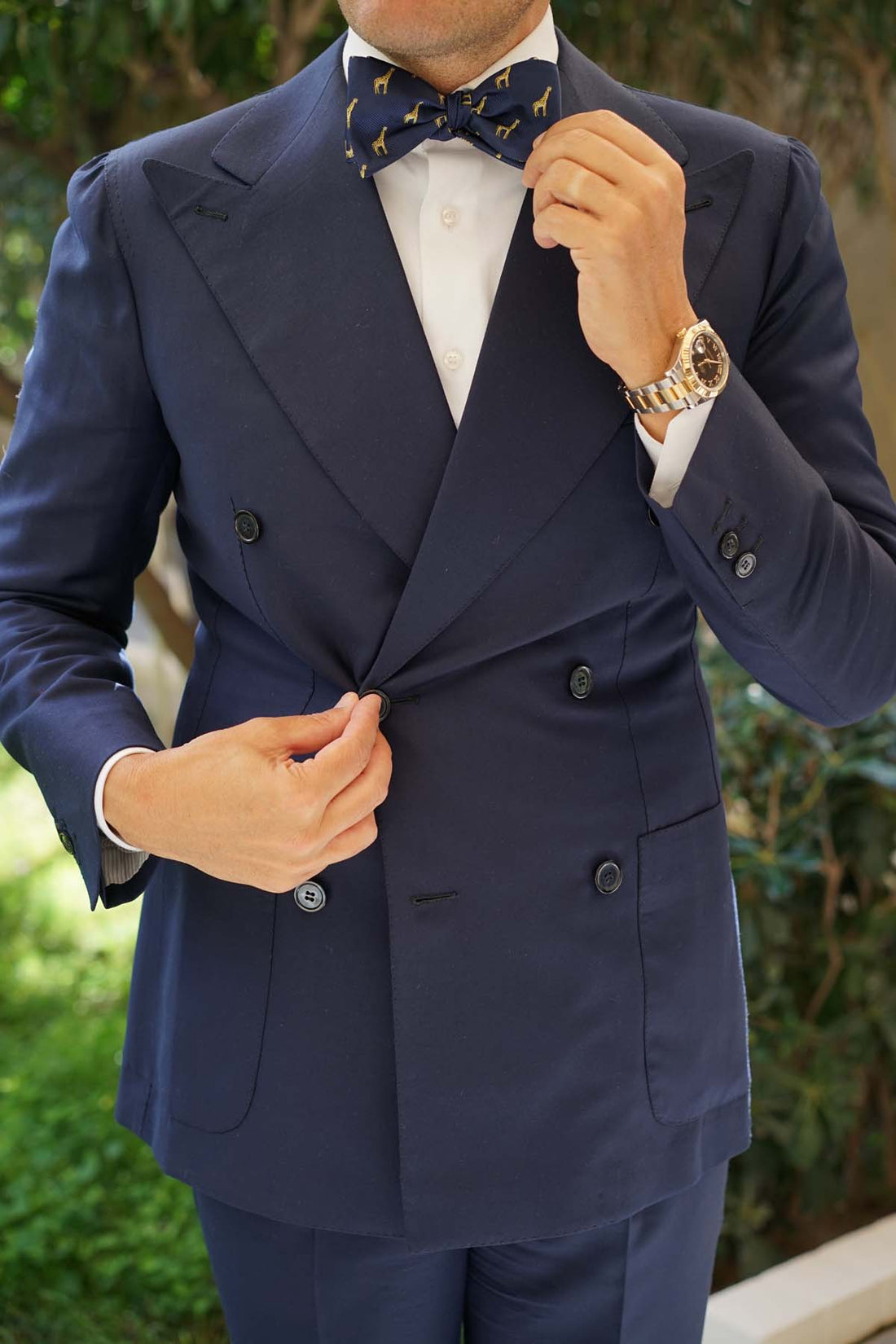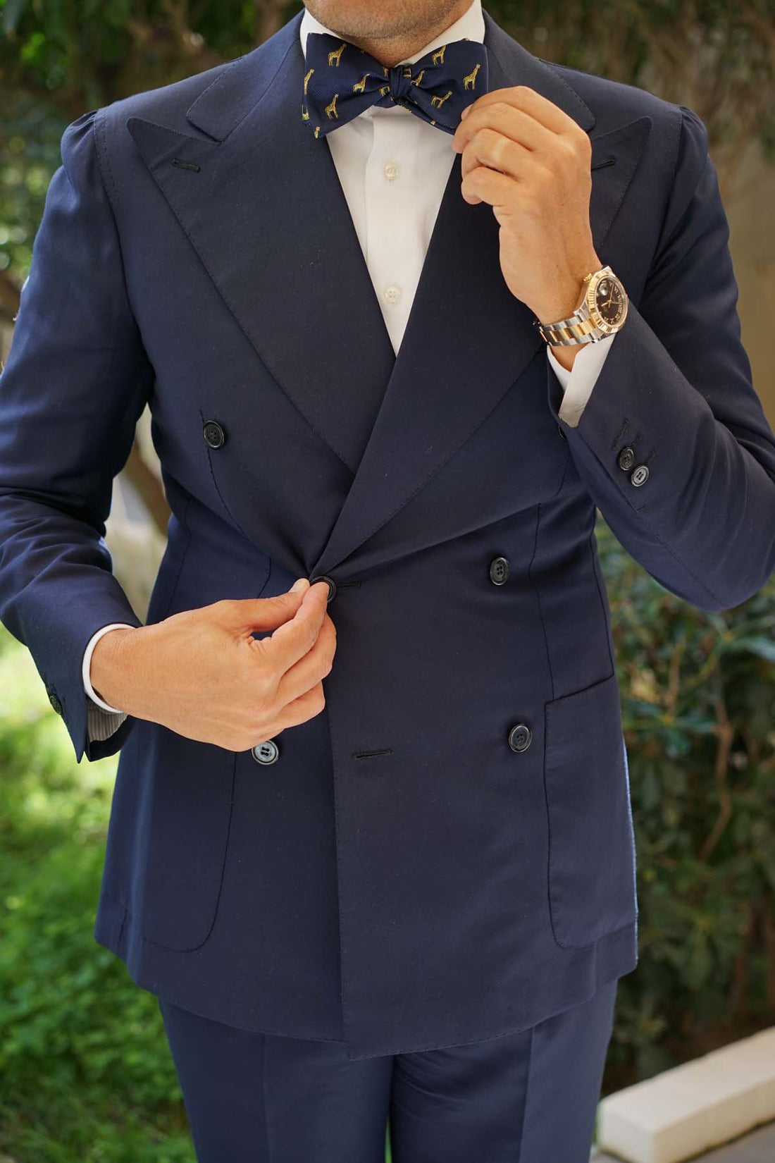 Our hand-sewn method allows the Giraffe Self Tie Bowtie to show extraordinary detail as there is little machinery used in the crafting of this tie. Touches such as these make all the difference. Besides, at least next time when we go on a Safari, we will have covered the whole jungle. Inspired by this lovable Giraffe that we saw in the flesh, our Giraffe Self Bow Tie exudes sophistication and is hand cut and sewn on a classic navy backing. Designed exclusively by The Brothers at OTAA.