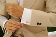 Includes a small cylinder at the back that rotates 90 degrees to hold the cufflink in place