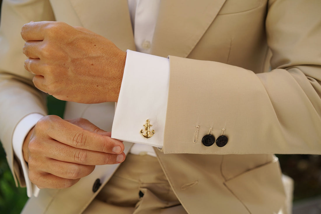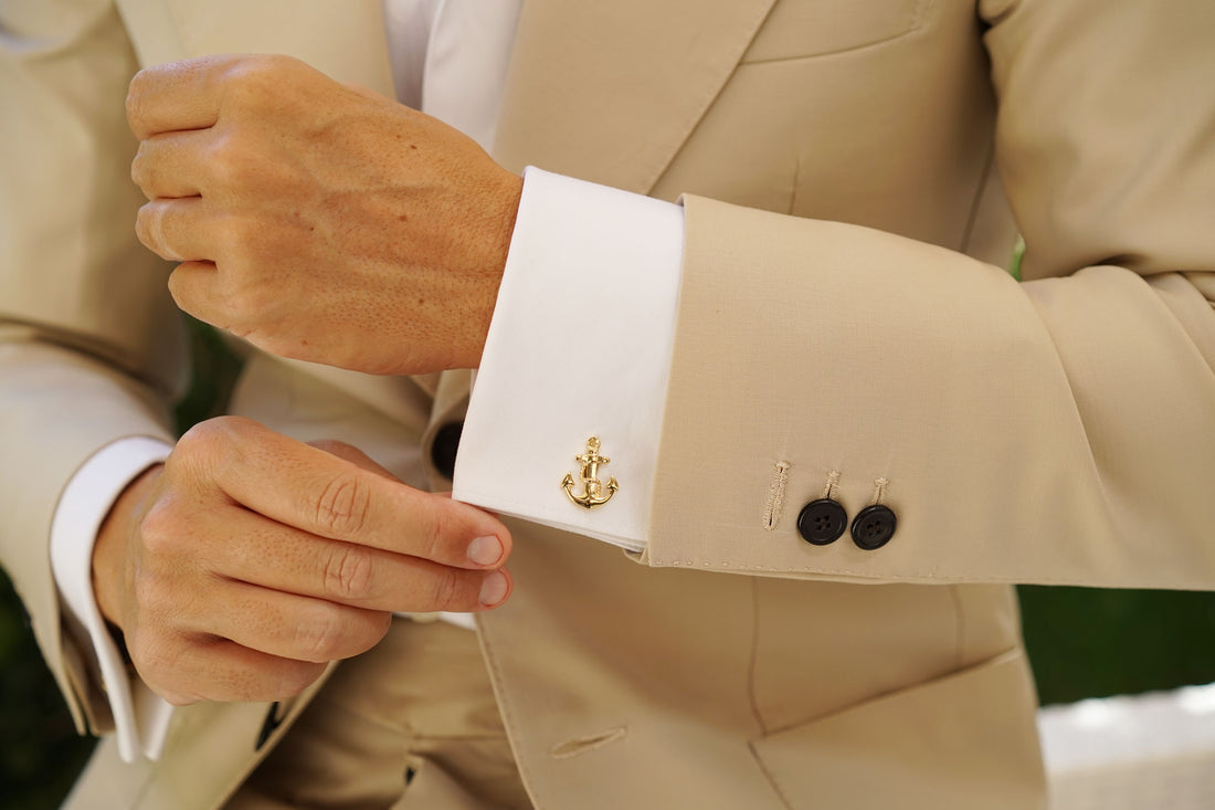 Atop a yacht with a martini in-hand, an OTAA Brother professed 'exquisite' as his Gold Anchor Rope Cufflinks glistened in the sunset. Designed with a nautical flair, these Gold Anchor Rope Cufflinks were expertly hand-chiselled from rhodium by OTAA's craftsman and finessed in a glossy gold coating to provide a luxurious touch. The rich gold finishing on these cufflinks will add a warm detail to your ensemble. The promise of style and class is delivered through the eye-catching anchor and rope design that boasts an unparalleled accompaniment for the sea-venturing man.