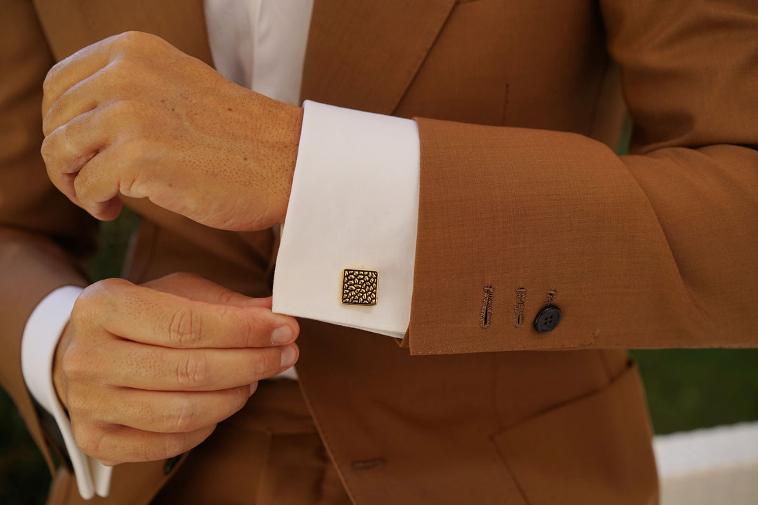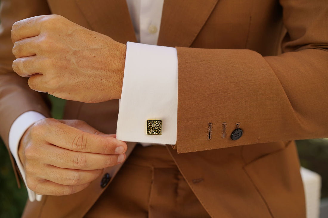 Unrivalled class is a stone's throw away with these Gold Pebble Cufflinks. Precision, design and immaculate detail are tenets at the forefront of OTAA's philosophy and similarly embodied through the fruition of this design. Expertly hand-crafted and finessed with precision, these cufflinks were curated from rhodium and completed with a luxurious gold finish with black features. The black background provides the perfect host to accentuate the gold pebbles that are embossed throughout. The gold finish incites a warm palette that will finesse your attire with regality.