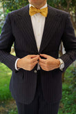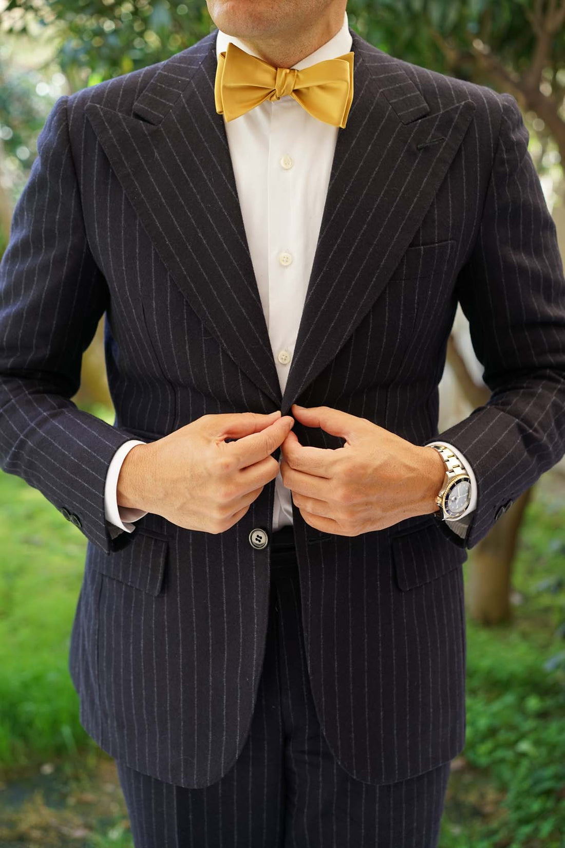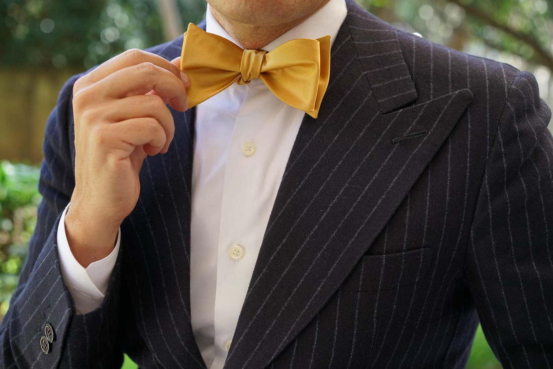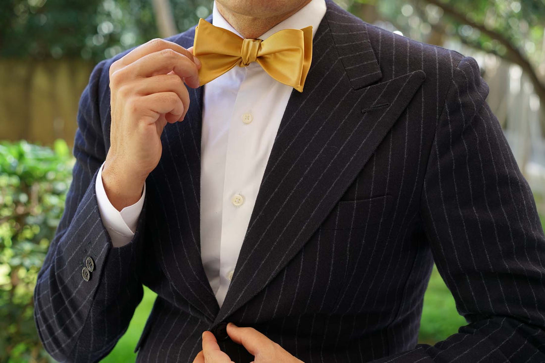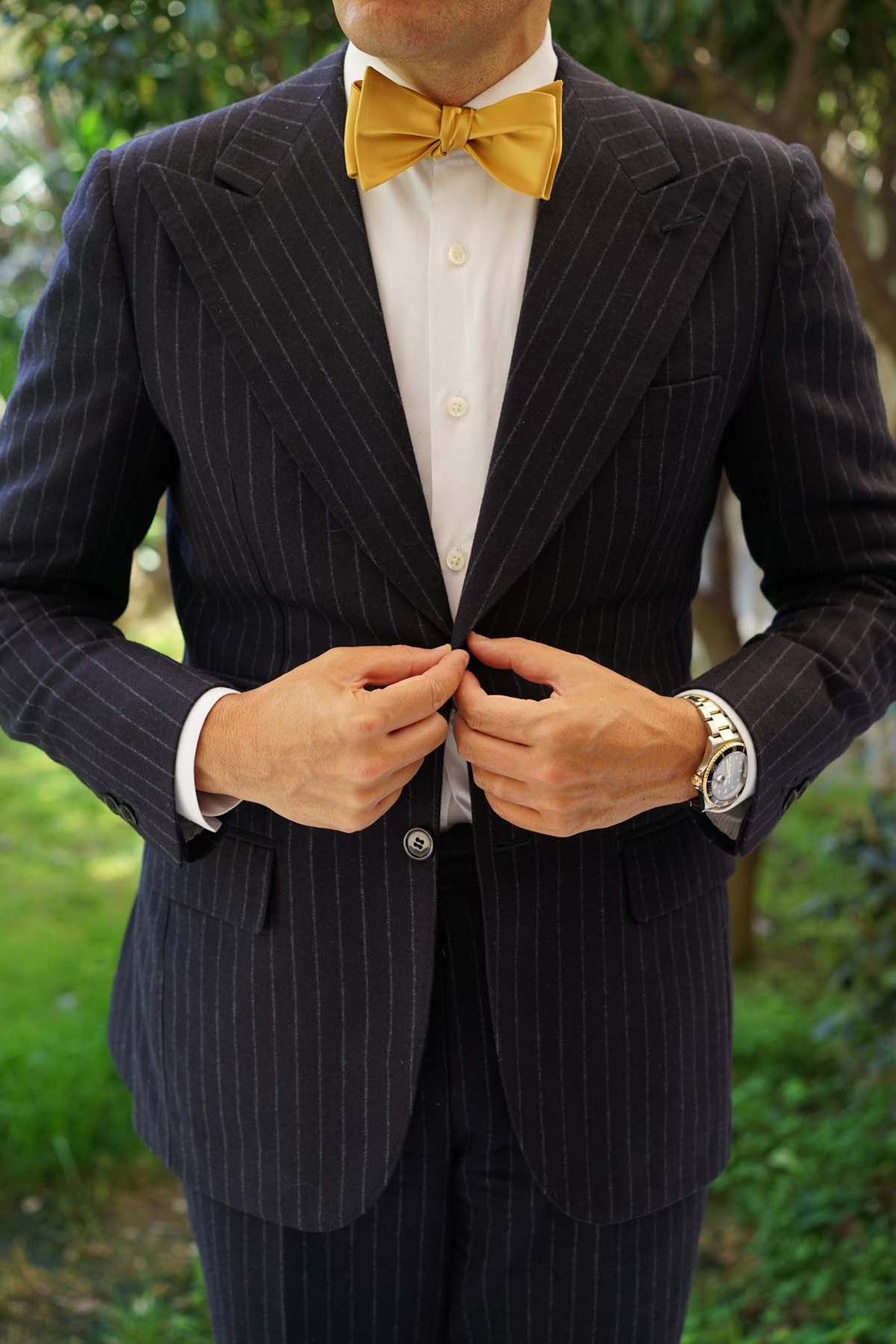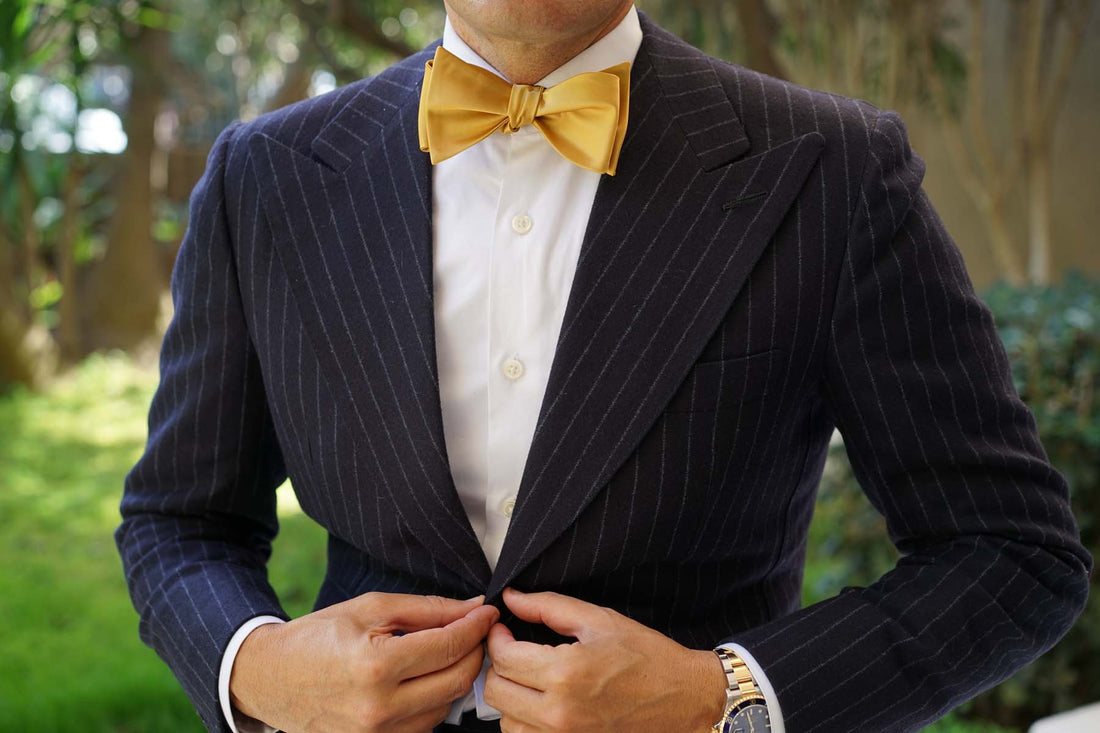 Give an extravagant tone to formal styles with OTAA’s Gold Satin Self Tie Bow Tie. Regarded for centuries as being synonymous with nobility and wealth, the gold palette of this untied bow tie will give your suits a lavish appeal. Stitched by hand and tailored from a fine satin fabric, this Gold Satin Self Tie Bow Tie is as high-quality as they come. The smooth body and subtle lustre finish of this untied bow tie will give your formal styles an extravagant outlook. Let it add confidence to your boardroom looks and evening wear. Designed exclusively by the Brothers at OTAA.