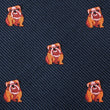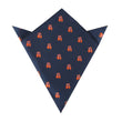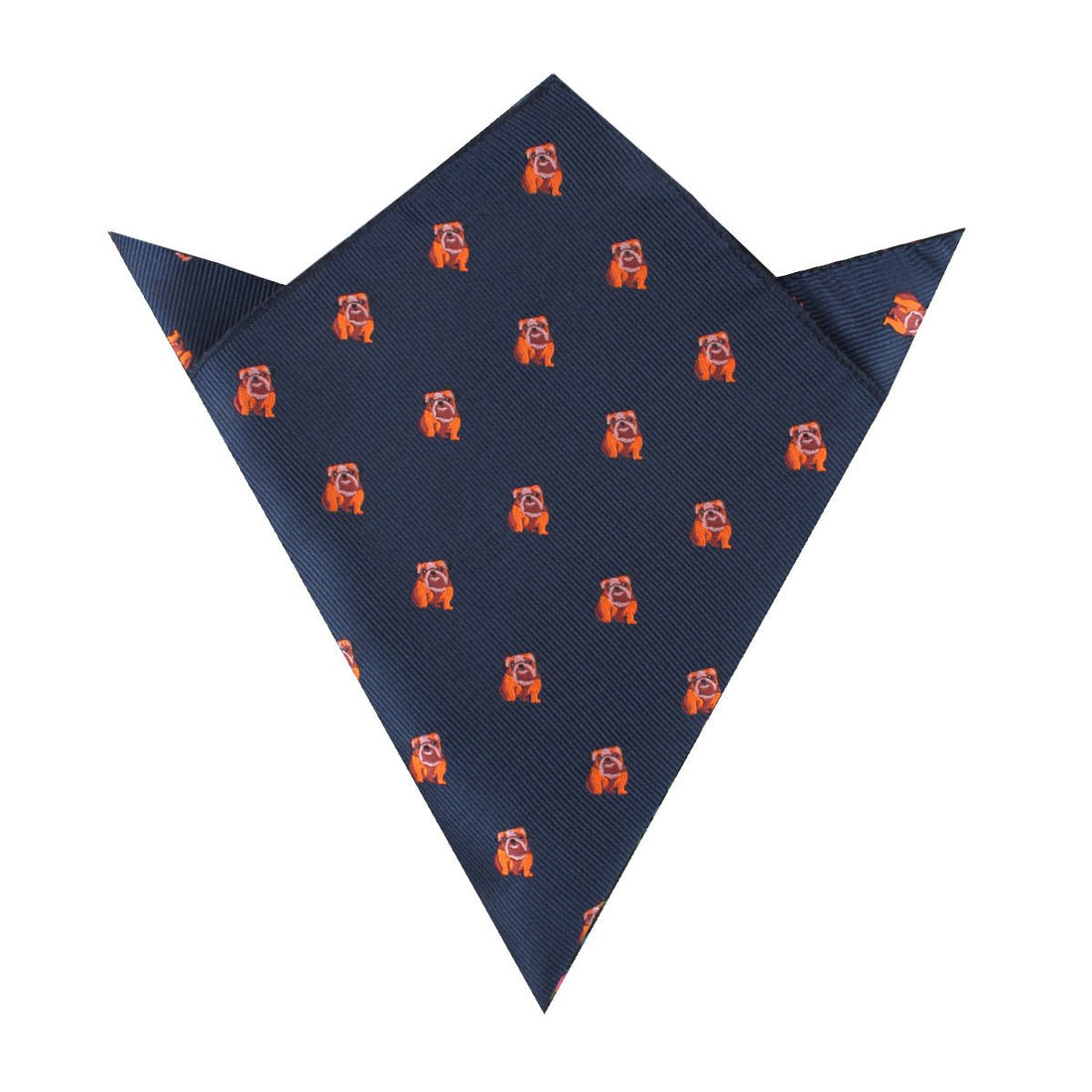 The Golden Bulldog Pocket Square offers a palette of light and dark brown hues atop a navy blue base. The luxuriously soft material features finely woven diagonal lines for a textured look. Let this handsome Golden Bulldog Pocket Square add a playful accent to your boardroom and weekend ensembles. Designed exclusively by the Brothers at OTAA.