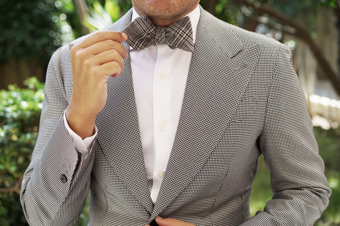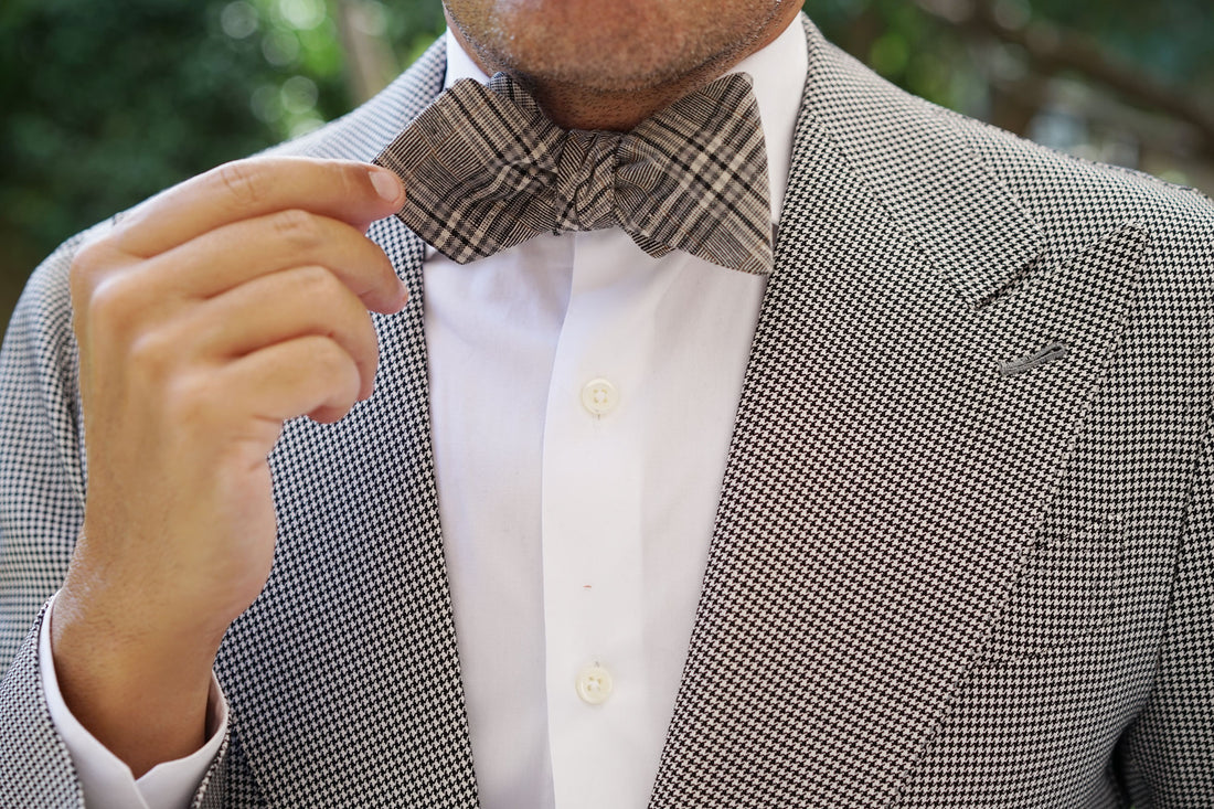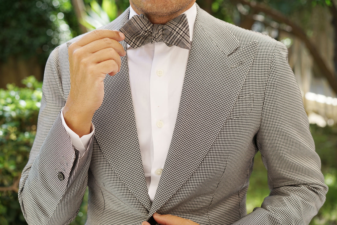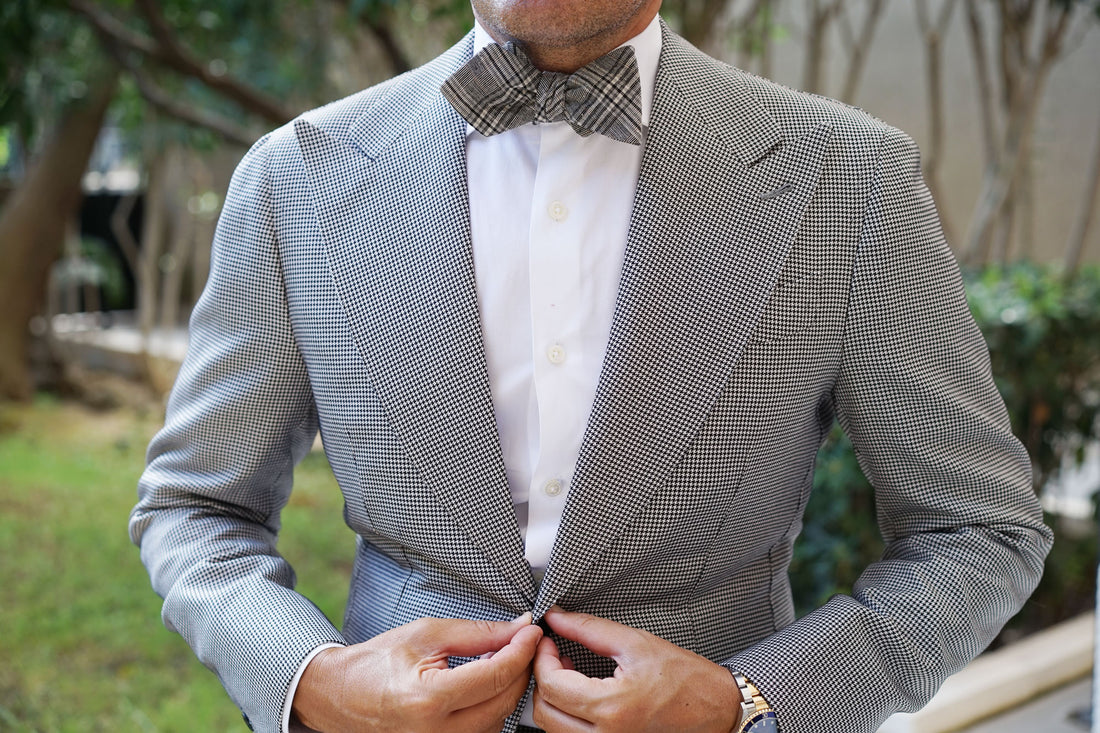 Finessed with a sophisticated plaid design, the Gray Glenurquhart Linen Diamond Self-Tie Bow Tie emanates a high-fashion presence. The intricate diagonal pattern features white, grey and black tones with subtle hints of mustard. Hand-stitched and tailored to perfection, this elegantly constructed diamond untied bowtie boasts divine quality. Designed exclusively by the Brothers at OTAA.