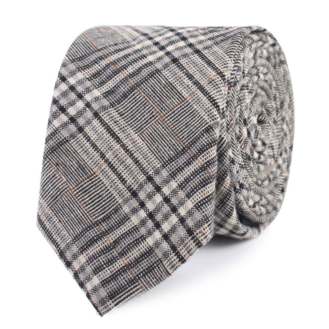 Finessed with a sophisticated plaid design, the Gray Glenurquhart Linen Skinny Tie emanates a high-fashion presence. The intricate diagonal pattern features white, grey and black tones with subtle hints of mustard. Hand-stitched and tailored to perfection, this elegantly constructed thin tie boasts divine quality. We recommend wearing it to the boardroom to achieve a confident look. Designed exclusively by the Brothers at OTAA.