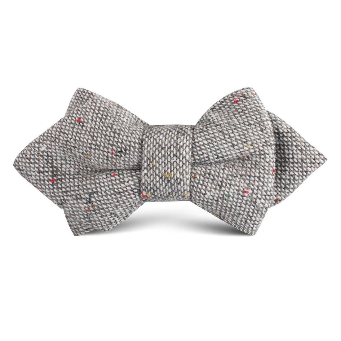 Sewn by hand and tailored with expertise, this Gray Sharkskin Boys Diamond Bow Tie is a luxuriously fine staple. The soft gray palette is vivaciously complemented by multi-coloured speckles for a flamboyant outlook. Handcrafted from a plush woven blend, this kids diamond bowtie is smooth to the touch and brings a comfortable accent to your child’s weekend attire. Designed exclusively by the Brothers at OTAA.