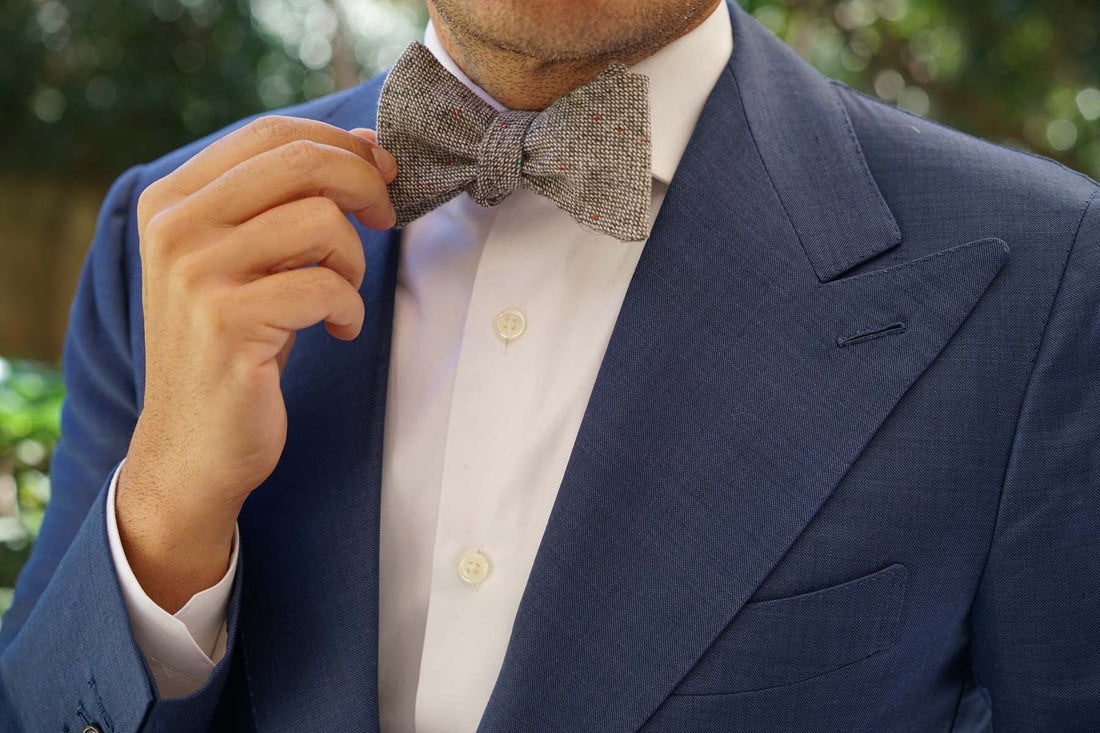 Sewn by hand and tailored with expertise, this Gray Sharkskin Untied Bow Tie is a luxuriously fine staple. The soft gray palette is vivaciously complemented by multi-coloured speckles for a flamboyant outlook. Handcrafted from a plush woven blend, this self tie bow tie is smooth to the touch and brings a comfortable accent to your workweek attire. Designed exclusively by the Brothers at OTAA.