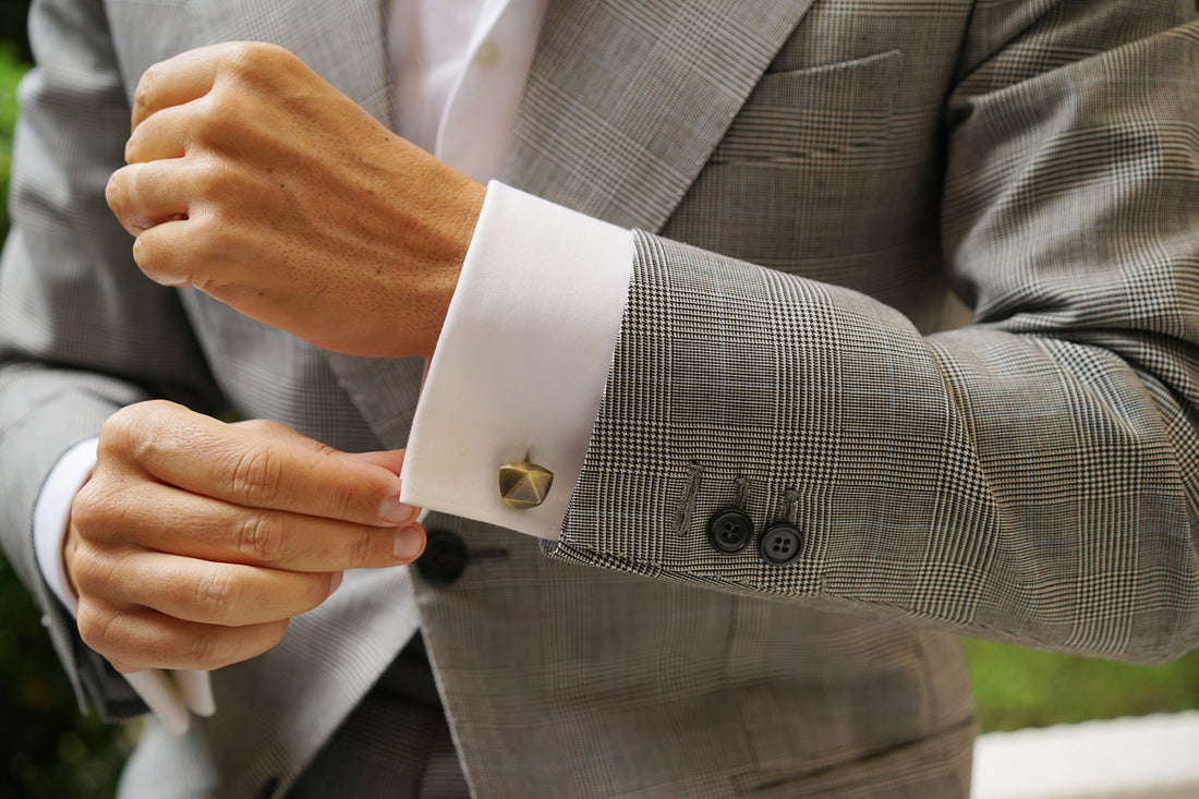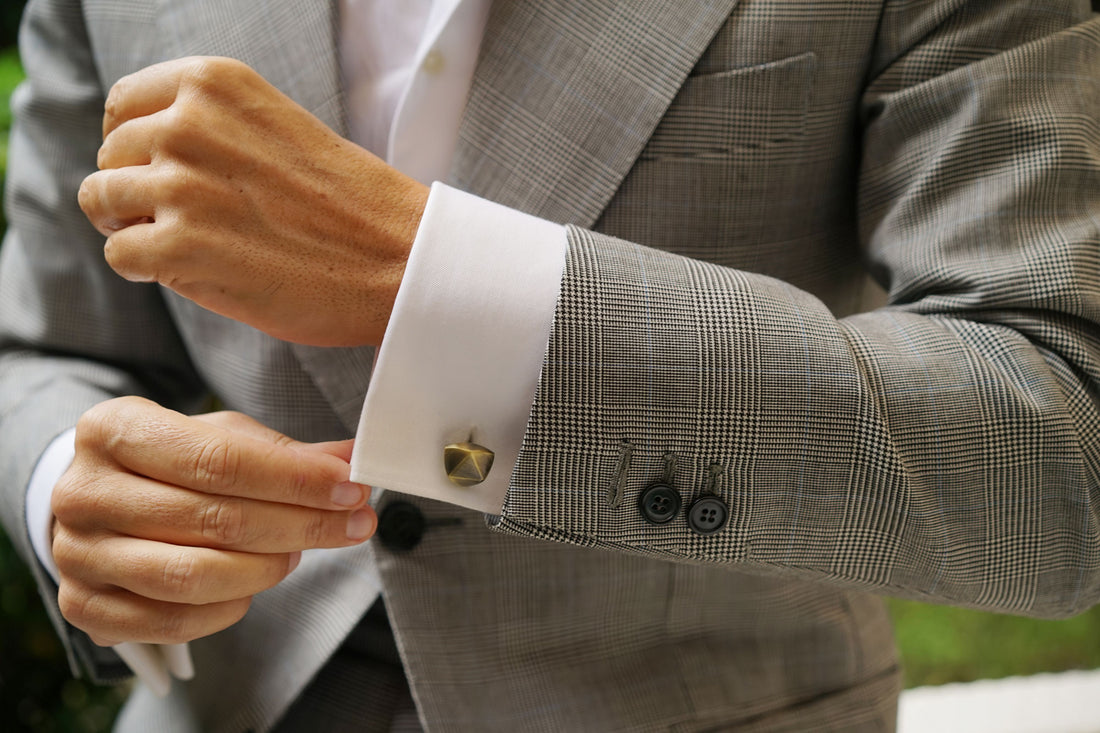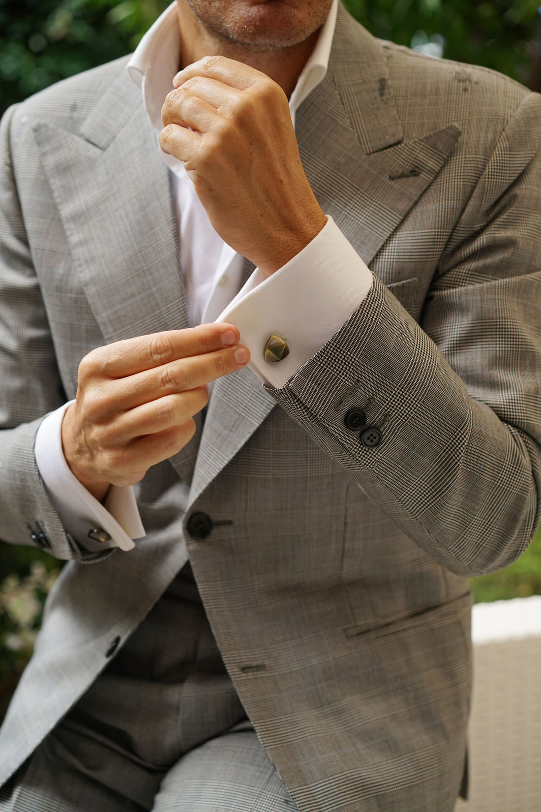 Bold dimension and unparalleled craftsmanship are demonstrated in the design of OTAA’s Great Khan Antique Brass Cufflinks. Inspired by unparalleled power and strength, these Great Khan Antique Brass Cufflinks were curated to embolden your stride with greatness. This OTAA design is flawlessly crafted from rhodium and finessed in a luxurious antique brass coating. Impeccably finessed with hand-chiselled embellishments, these Great Khan Antique Brass Cufflinks feature flawless triangle-shaped dimensions. The antique brass finishing on these cufflinks provides a deep dual-toned palette to add a vintage flair to your ensemble.