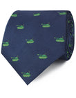 Constructed by hand from a finely woven navy material, this necktie effortlessly marries army style with a high-quality outlook. The charming light and medium green highlights gives this navy blue necktie a sophisticated pop of colour. Wear this Green Army Tank Necktie to channel a confident look for your on-duty and off-duty styles. Designed exclusively by the Brothers at OTAA.