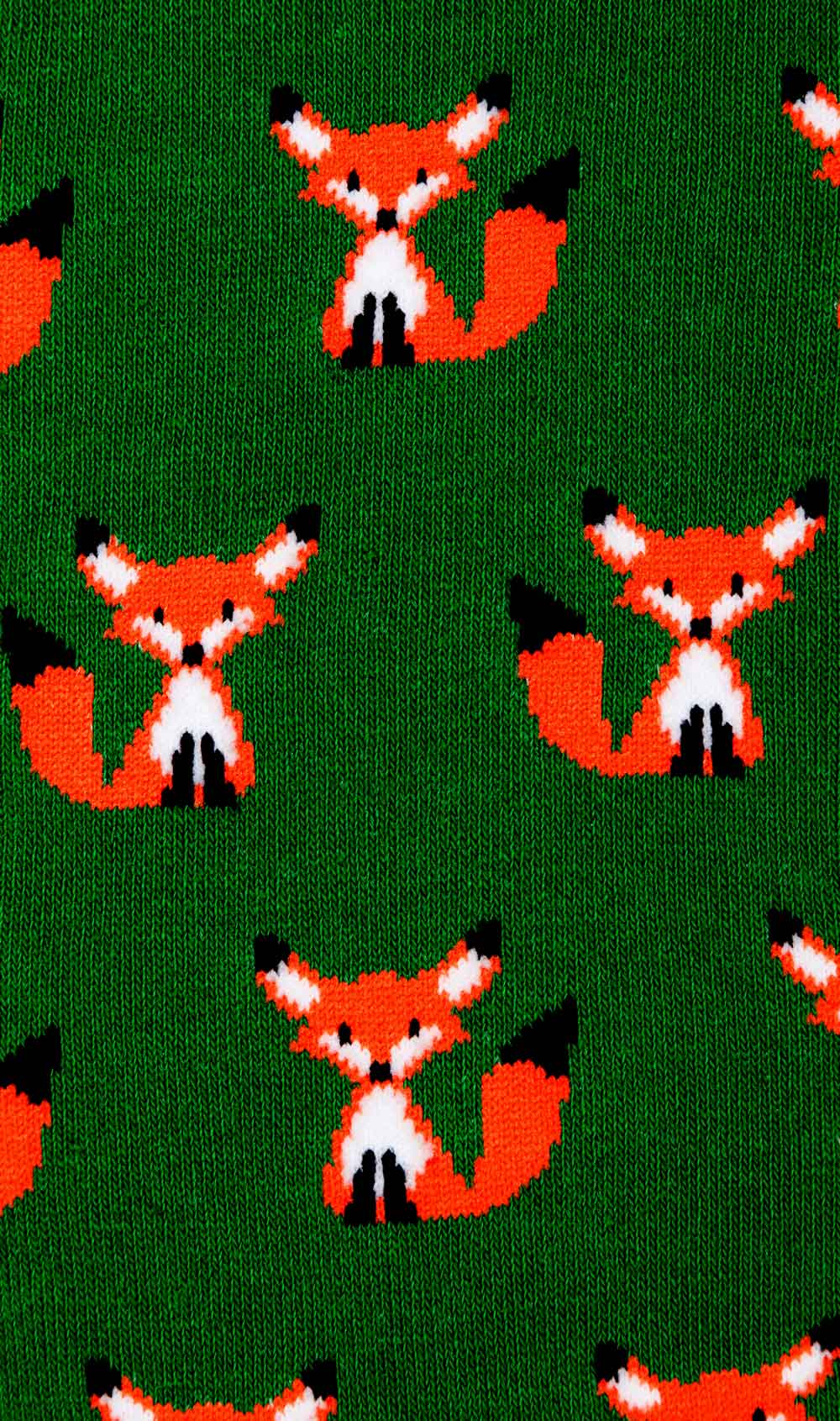 Put a sharp edge in your stride with OTAA's Green Curious Fox Socks. Boasting a striking foxy print on a vibrant green background, these Green Curious Fox Socks will surely widen eyes all round- all the more better to see you with! Featuring a luxurious combed cotton material that's finessed with a 200 needle stitch, these Green Curious Fox Socks make the perfect choice for style aficionados who happen to enjoy long romantic walks in the forest (just don't stray off the path)! The elegant orange, white and green hues make a vivacious complement to any outfit of choice and will undoubtedly put a devilish detail in your stride! Designed exclusively by the Brothers at OTAA.