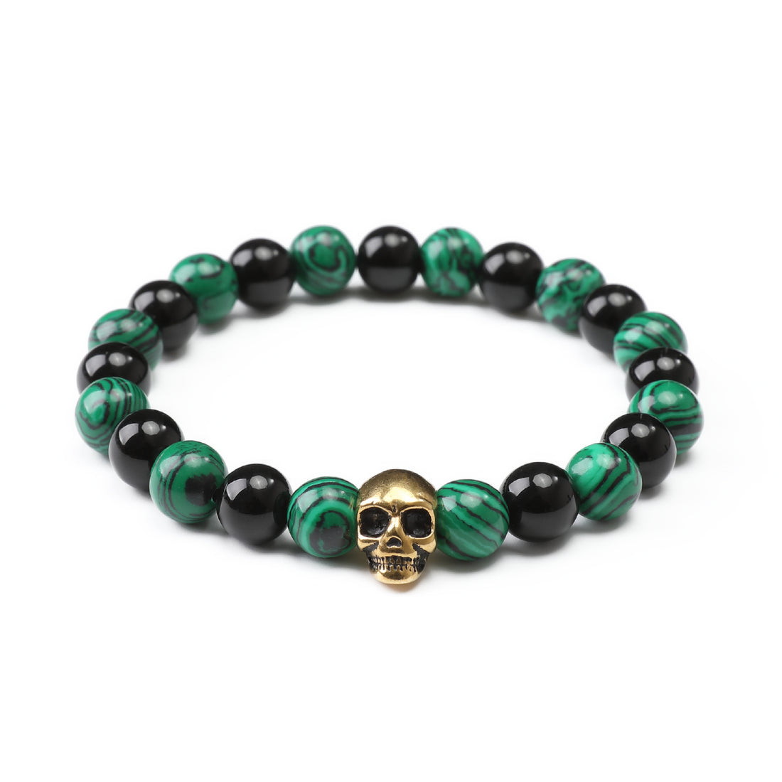 With immaculate design and craftsmanship at the forefront, OTAA's Green Malachite Gold Skull Bracelet is imbued with sentiments of adventure and possibility. Adorned with a gold skull charm that was hand-chiselled with intricate details and boasting a stellar green, black and gold palette, this bracelet offers a unique completion to formal and casual attires.