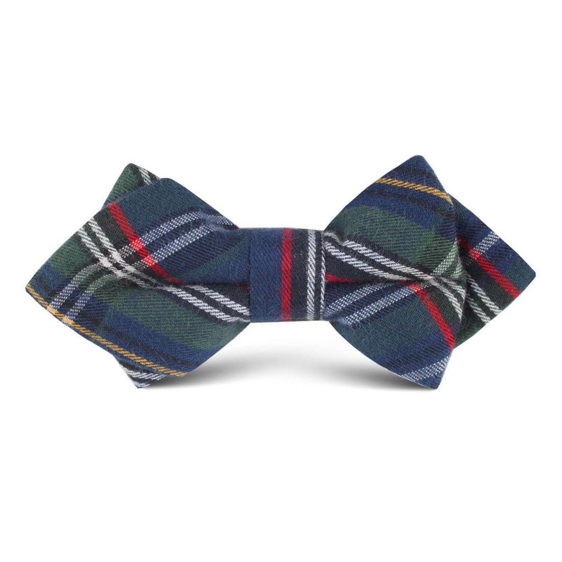 Stitched by hand and tailored to perfection, this Green Scottish Kilt Boys Diamond Bow Tie makes a high-quality statement. Featuring a confident green complexion, this handsome tartan design is finessed with black, white, yellow, red and blue highlights for a sophisticated presence. Designed exclusively in-house, this Green Scottish Kilt Boys Diamond Bow Tie adds an accomplished tone to your little man’s formal and everyday tailoring.