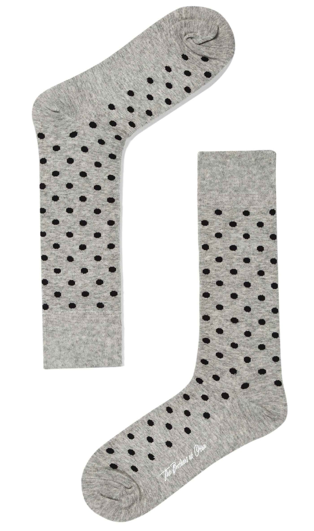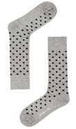 These Grey Black Polka Dot Socks provide an eye catching take on a staple item that's guaranteed to liven up your assemblage. It takes a man of sophistication to pay attention to the smaller details of an outfit, and with the dotted features of these socks, all that's left needed is a martini in-hand. The grey background plays an ideal host to the black dots are that embossed throughout. The Grey Black Polka Dot Socks are finely crafted from combed cotton material with a comfortable 200 needle stitch to finish your look with the utmost finesse.