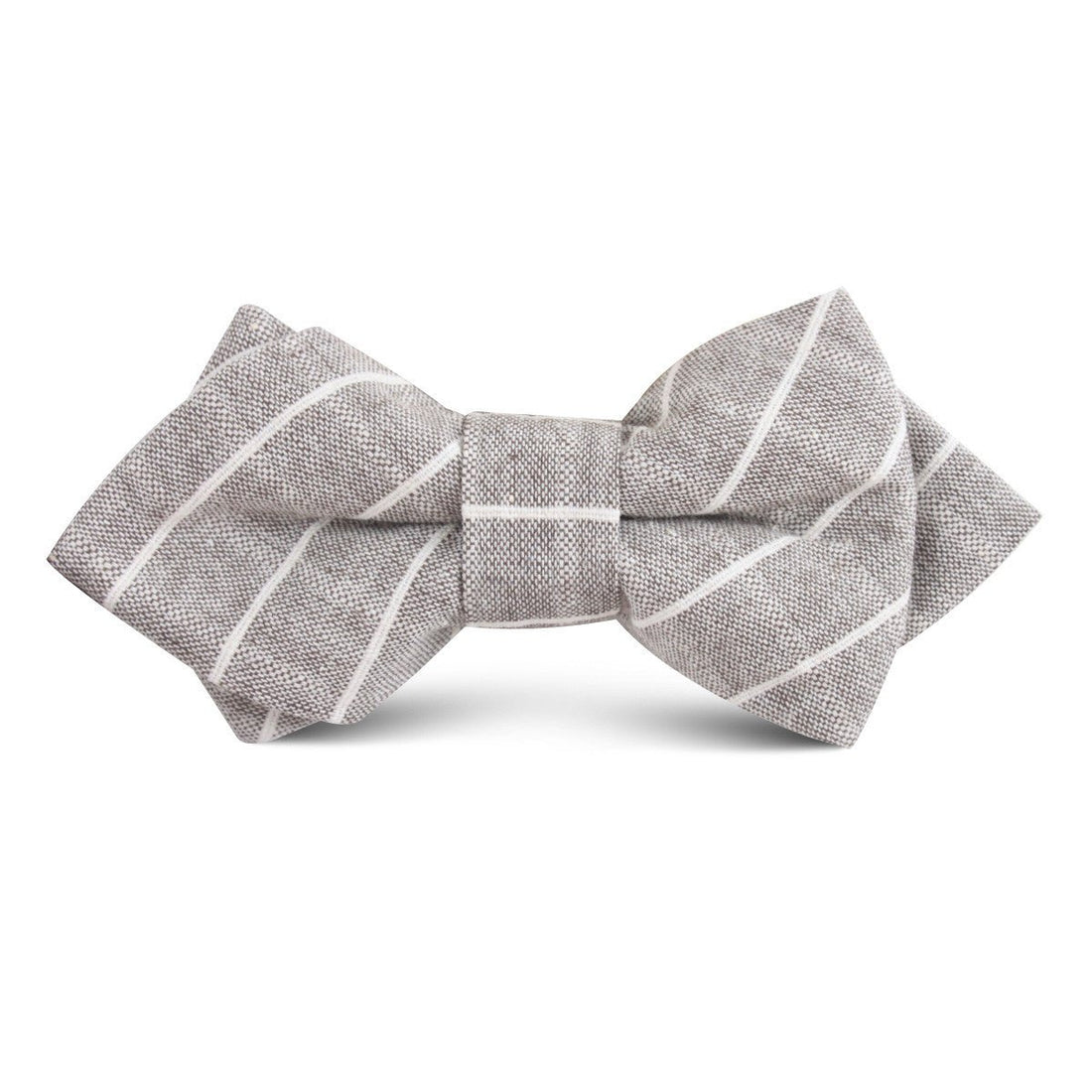 The Grey Edinburgh Pinstripe Kids Diamond Bowtie offers unmistakable quality through its hand-stitched design and elegantly constructed body. Making a high-quality statement, this boys diamond bow tie makes the perfect staple for your little man’s formal functions. The soft grey palette features subtle white stitching and a refined diagonal striped pattern. Let him wear it to give a polished appearance with his everyday styles. Designed exclusively by the Brothers at OTAA.