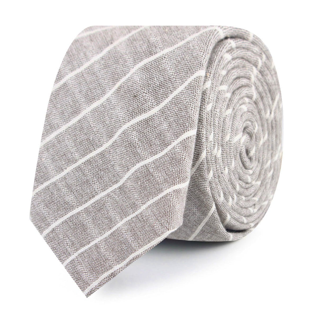 The Grey Edinburgh Pinstripe Skinny Tie offers unmistakable quality through its hand-stitched design and elegantly constructed body. Making a high-quality statement, this thin tie makes the perfect staple for work styles and casual looks alike. The soft grey palette features subtle white stitching and a refined diagonal striped pattern. Designed exclusively by the Brothers at OTAA.