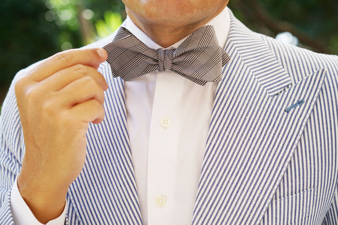 Grey Glen Plaid Fabric Self Tie Diamond Tip Bow TieM108