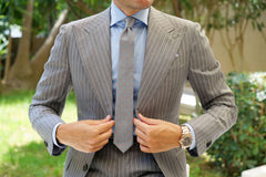 Grey with Mint Blue Polka Dots Skinny Tie Side Roll