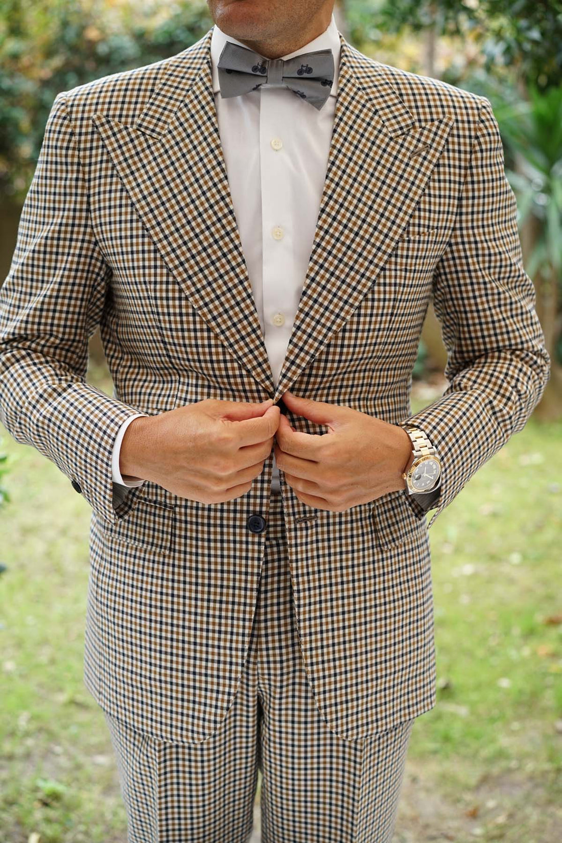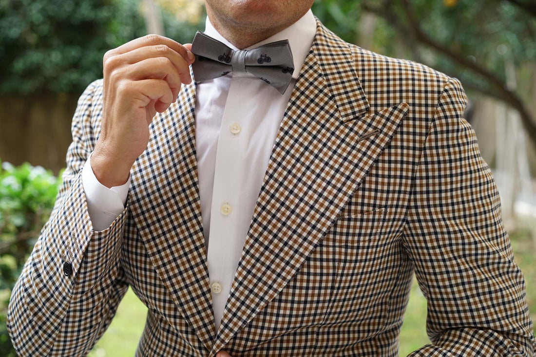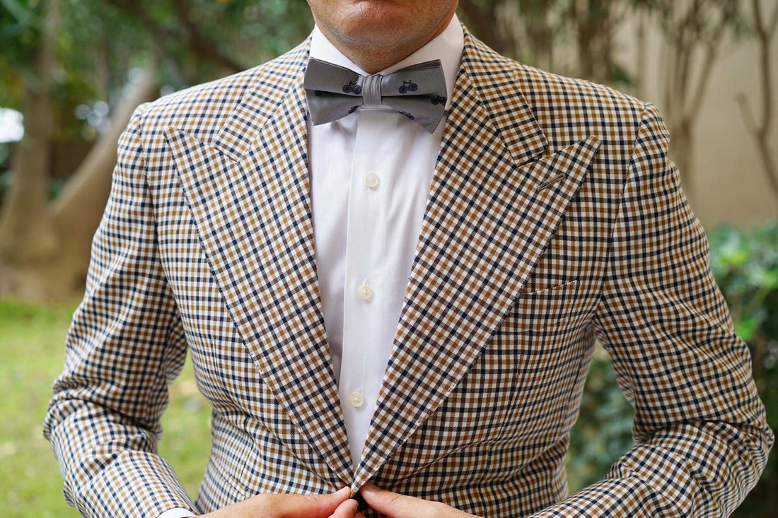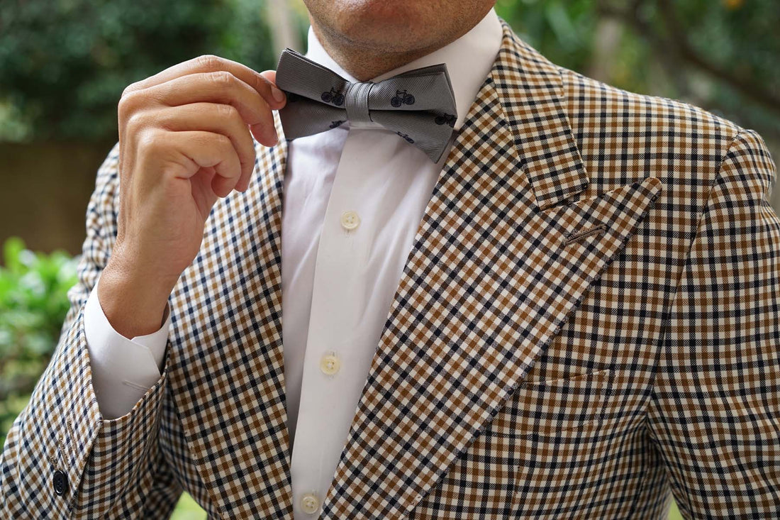 Inspired by Paul de Vivie who had a simple start in life, this Grey with Navy Blue French Bicycle Bow Tie woven by hand is decorated in a French bicycle print. In 1881, Paul de Vivie, a man of twenty-eight, bought his first bicycle. By 1887, de Vivie decided to devote his attention to his avocation; he sold his business and moved to Saint-Étienne, where he opened a bicycle shop and started a magazine, Le Cycliste.