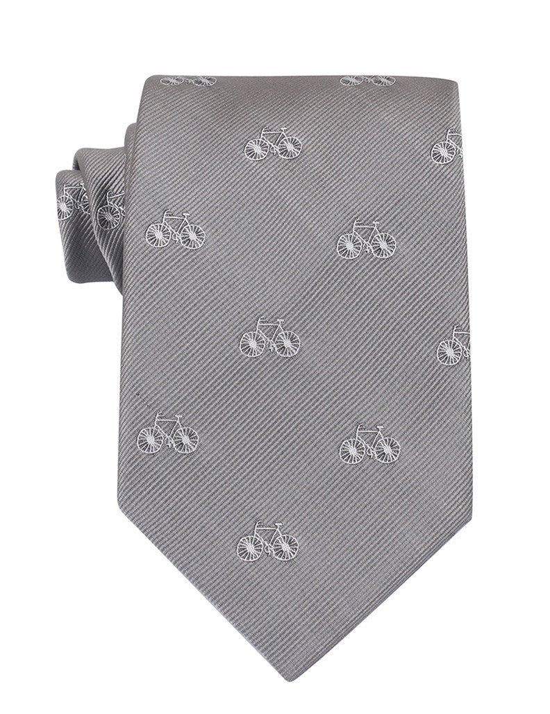 Inspired by Paul de Vivie who had a simple start in life, this Grey with White French Bicycle Necktie woven by hand is decorated in a French Bicycle print. In 1881, Paul de Vivie, a man of twenty-eight, bought his first bicycle. By 1887, de Vivie decided to devote his attention to his avocation; he sold his business and moved to Saint-Étienne, where he opened a bicycle shop and started a magazine, Le Cycliste.