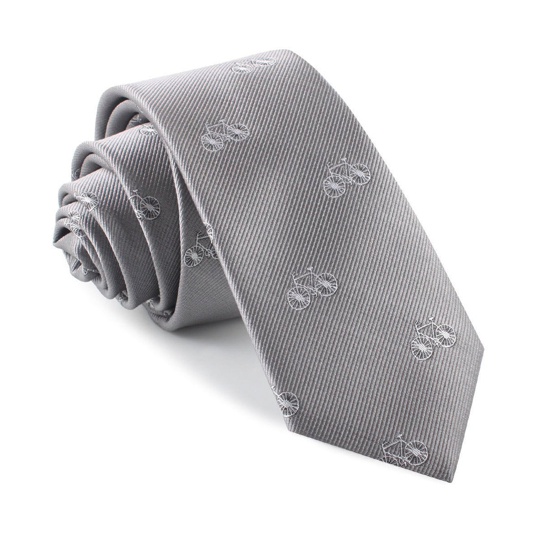 Inspired by Paul de Vivie who had a simple start in life, this Grey with White French Bicycle Skinny Tie woven by hand is decorated in a French Bicycle print. In 1881, Paul de Vivie, a man of twenty-eight, bought his first bicycle. By 1887, de Vivie decided to devote his attention to his avocation; he sold his business and moved to Saint-Étienne, where he opened a bicycle shop and started a magazine, Le Cycliste.