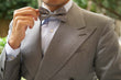 OTAA's Grey with Yellow Polka Dots Bow Tie is backed in a micro dotted layer of grey - a nod to the brothers' playful and functional aesthetic. The geometric yellow circle appliquéd is hand stitched, boosting this piece's cool appeal.