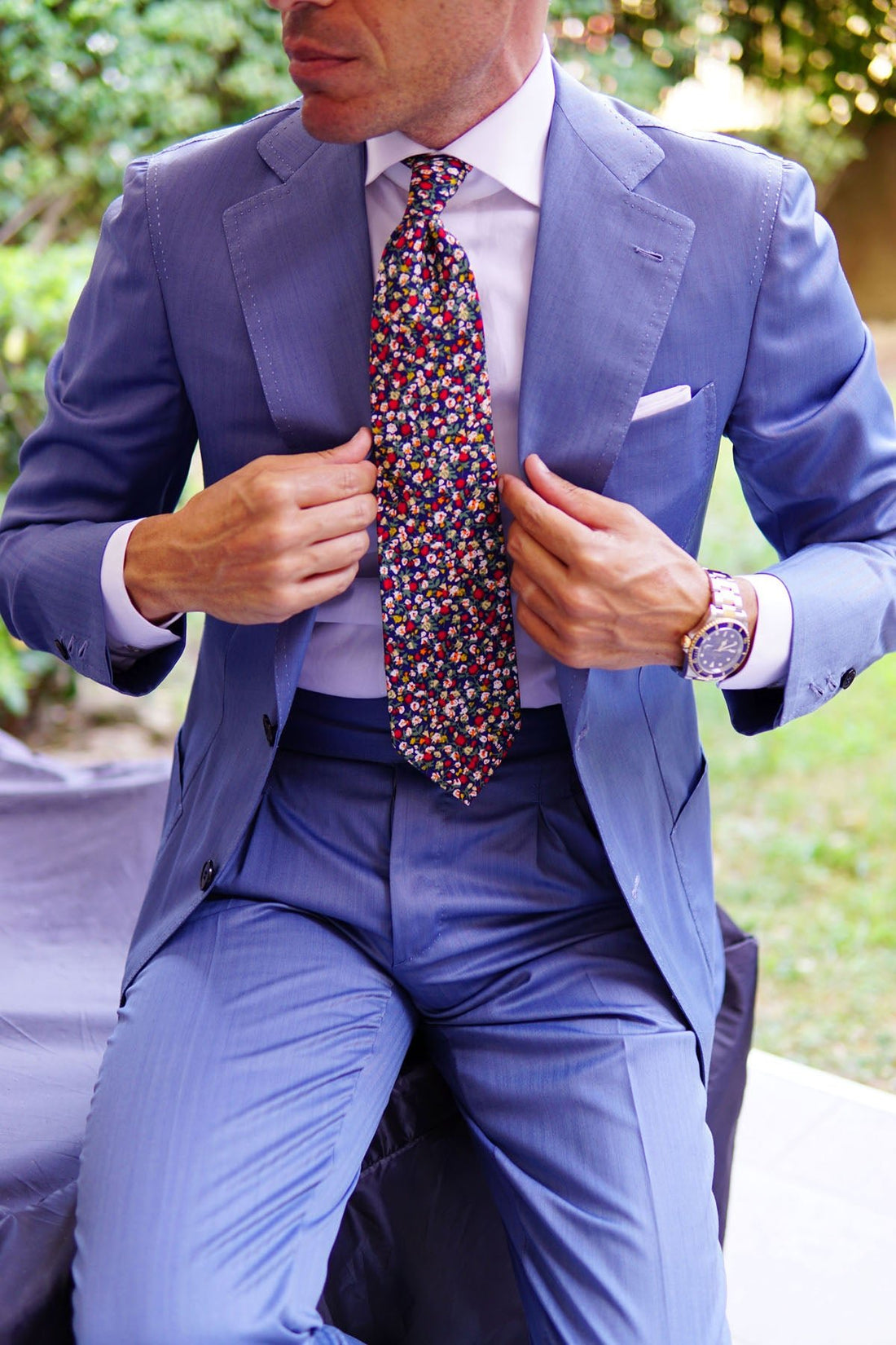 Beautifully adorned with an elegant floral design, this necktie features a medley blue, red, orange, yellow, green and white hues. The flamboyant design is met with high-quality attributes through its hand-stitched features and plush cotton body; making it a stand-out staple for sophisticated style. Designed exclusively by the Brothers at OTAA.