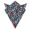 The ebullient multi-toned features of this handkerchief are encased in a striking floral design. The midnight navy blue base is superbly complemented by bright pink, purple, blue and green accents. Handcrafted from cotton and tailored with excellence, this pocket square magnificently showcases the label’s dedication to superior quality. Designed exclusively by the Brothers at OTAA.