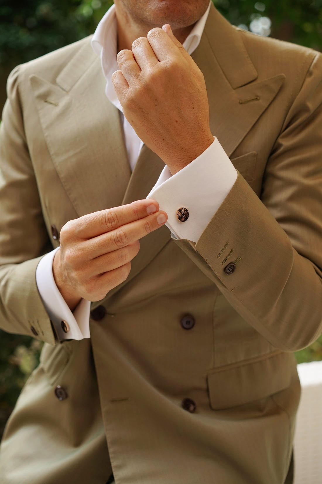 Includes a small cylinder at the back that rotates 90 degrees to hold the cufflink in place