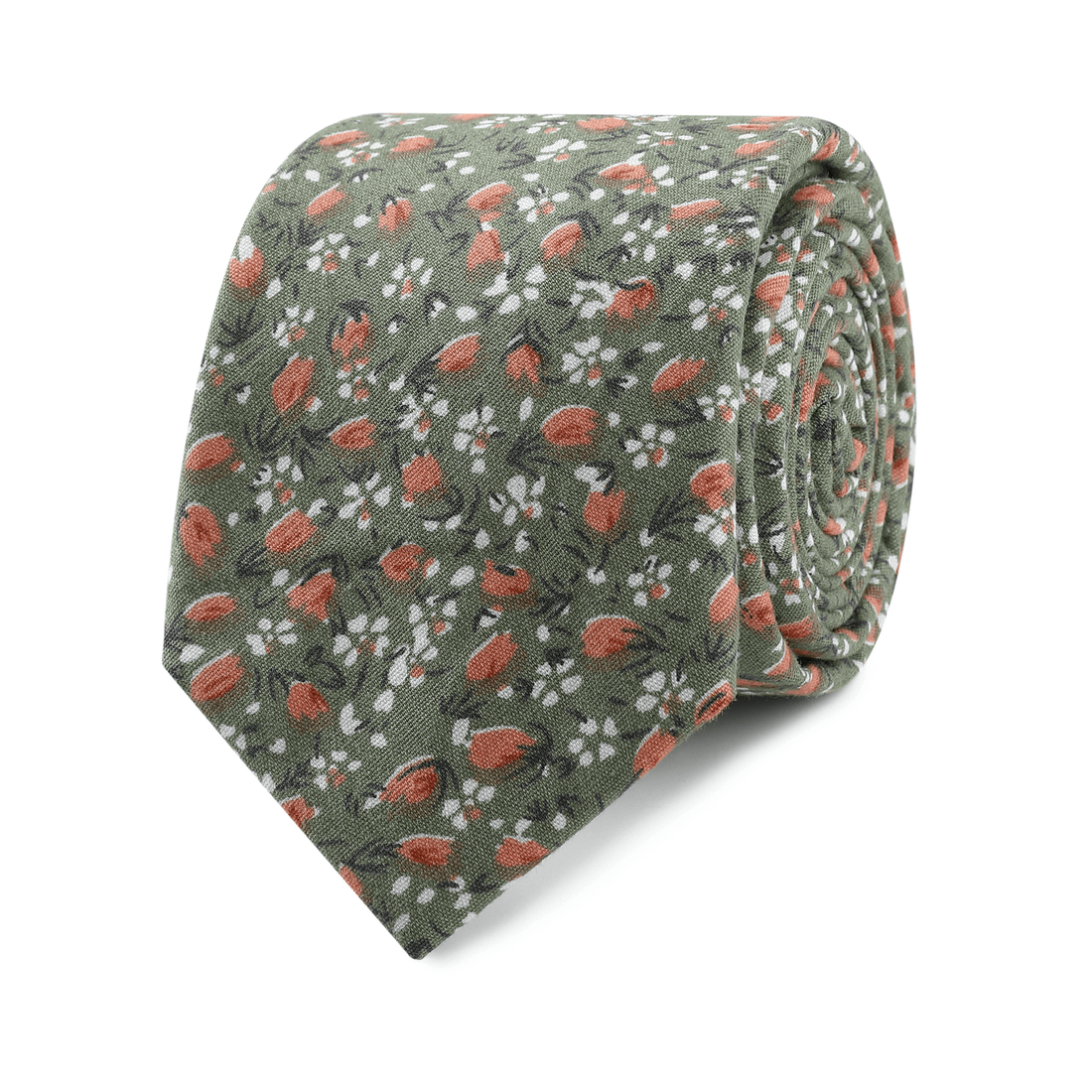 The Holland Meadow Skinny Tie brings a touch of countryside charm to your wardrobe with its soft green backdrop and delicate floral accents. The beautifully crafted orange and white blossoms lend a subtle elegance to this piece, making it perfect for outdoor weddings, garden parties, or any event where you want to infuse a bit of nature into your formalwear. The luxurious cotton fabric ensures a smooth feel and a comfortable fit.