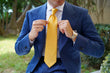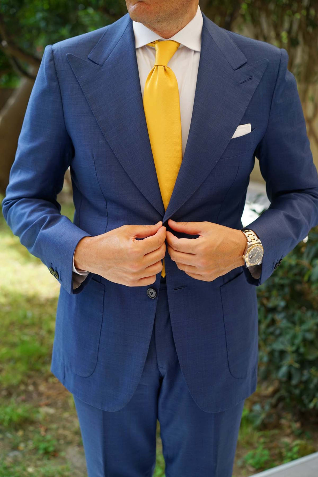 The Honey Gold Yellow Twill Necktie oozes vivacious charm. The rich chartreuse lustre adds a subtle touch of easy, decadent charm to this hand-crafted necktie. The Brothers at OTAA have established a friendly partnership with the bees of Australia, fashioning miniature accessories to impress their Queens, in exchange for the rare reagents involved in creating this scintillating shade of honey gold yellow and the results are something worthy of royalty.