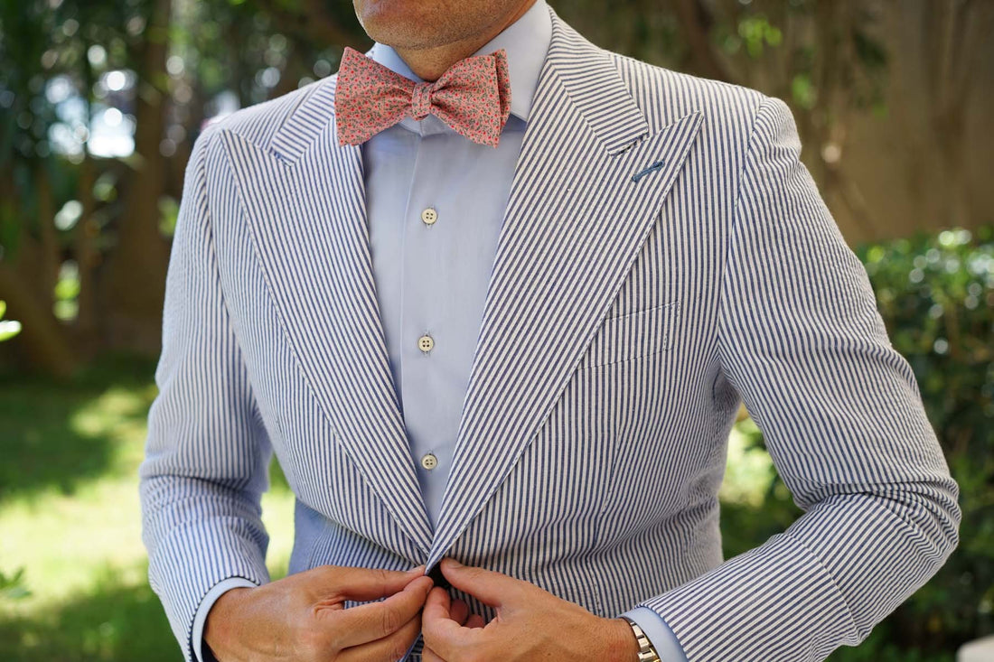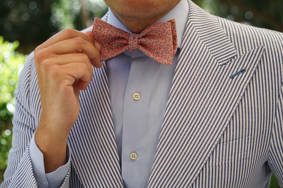 The Houston Pink Floral Self Tie bow tie adds a flamboyant accent to formal styles. The ebullient pink canvas is complemented by dark pink and green accents in an elegant floral design. Crafted by hand and superbly tailored from a plush cotton fabric, this untied bow tie demonstrates OTAA’s dedication to superior quality. Let the artisanal floral outlook of the Houston Pink Floral Self Tie Bow Tie add a sophisticated accent to your everyday tailoring. Designed exclusively by the Brothers at OTAA.