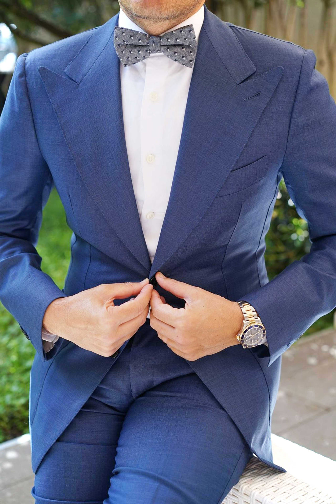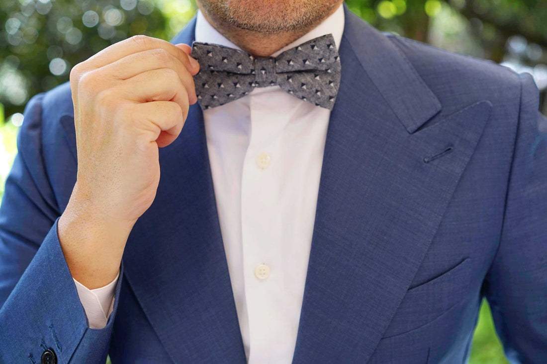 OTAA’s Inception Navy Linen Bow Tie features a sleek diamond design. Hand-stitched and constructed with elegance, this finely crafted Pre-tied Bowtie marries sophistication with style.