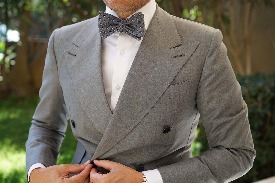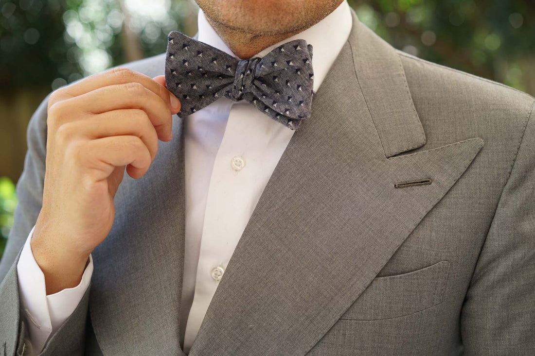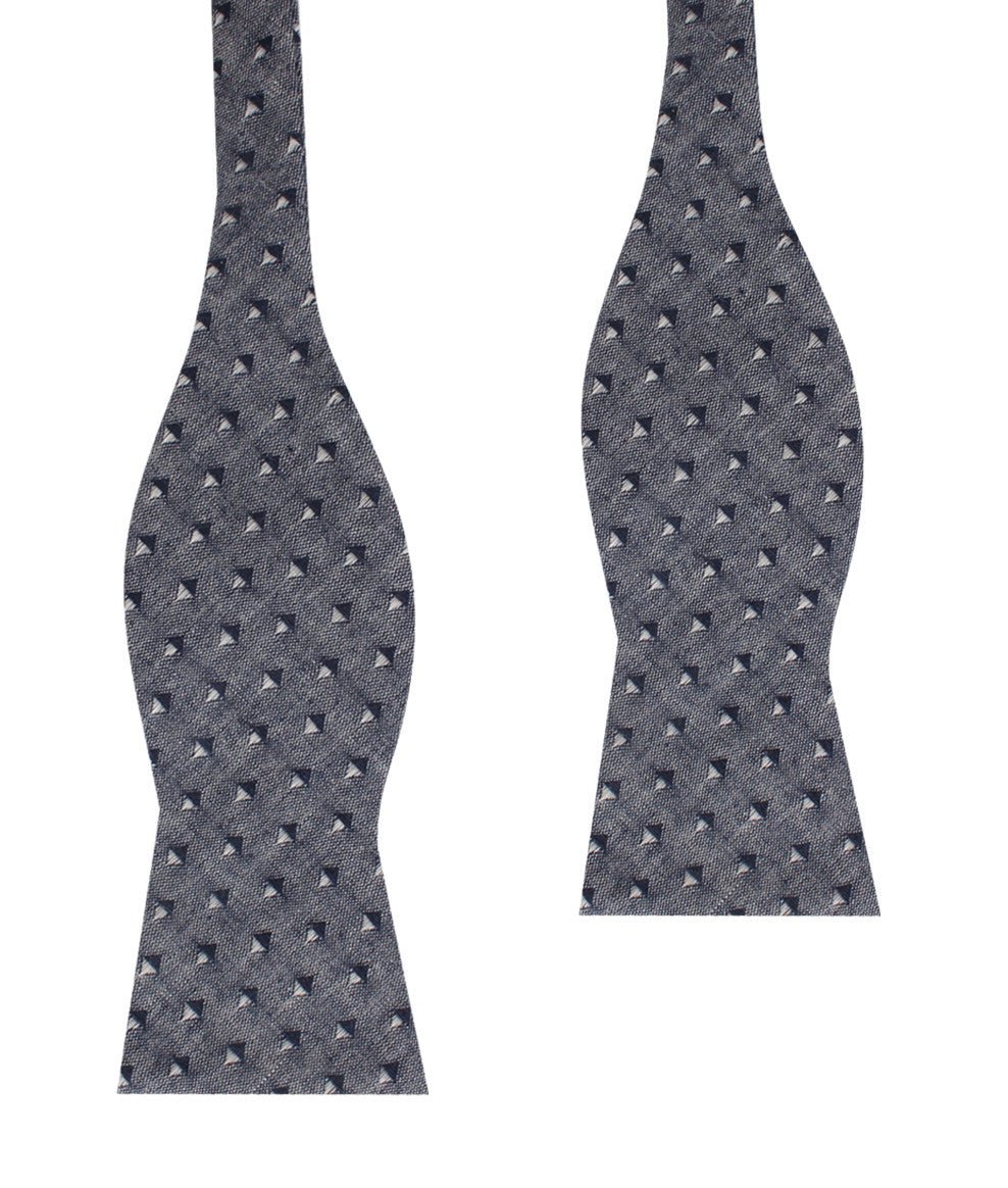 OTAA’s Inception Navy Linen Self Tie Bow Tie features a sleek diamond design. Hand-stitched and constructed with elegance, the Inception Navy Linen Untied Bow Tie marries sophistication with style.
