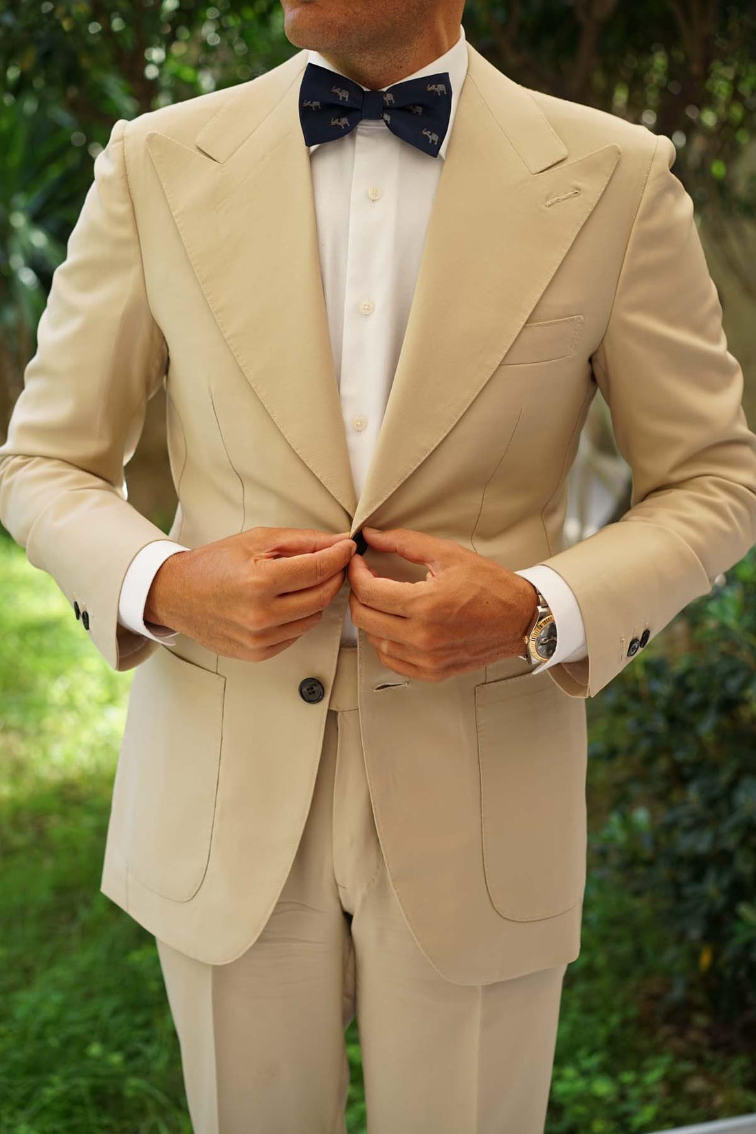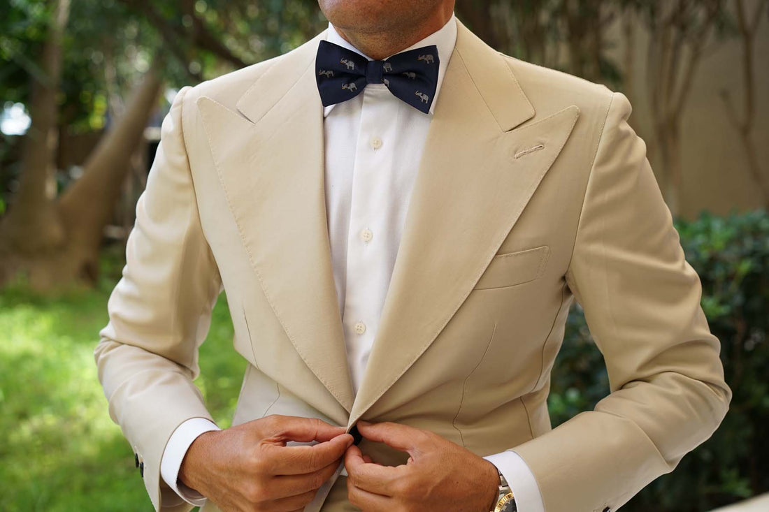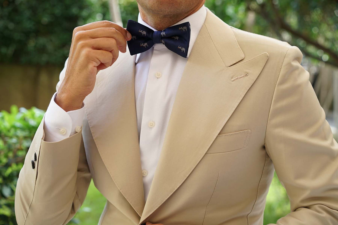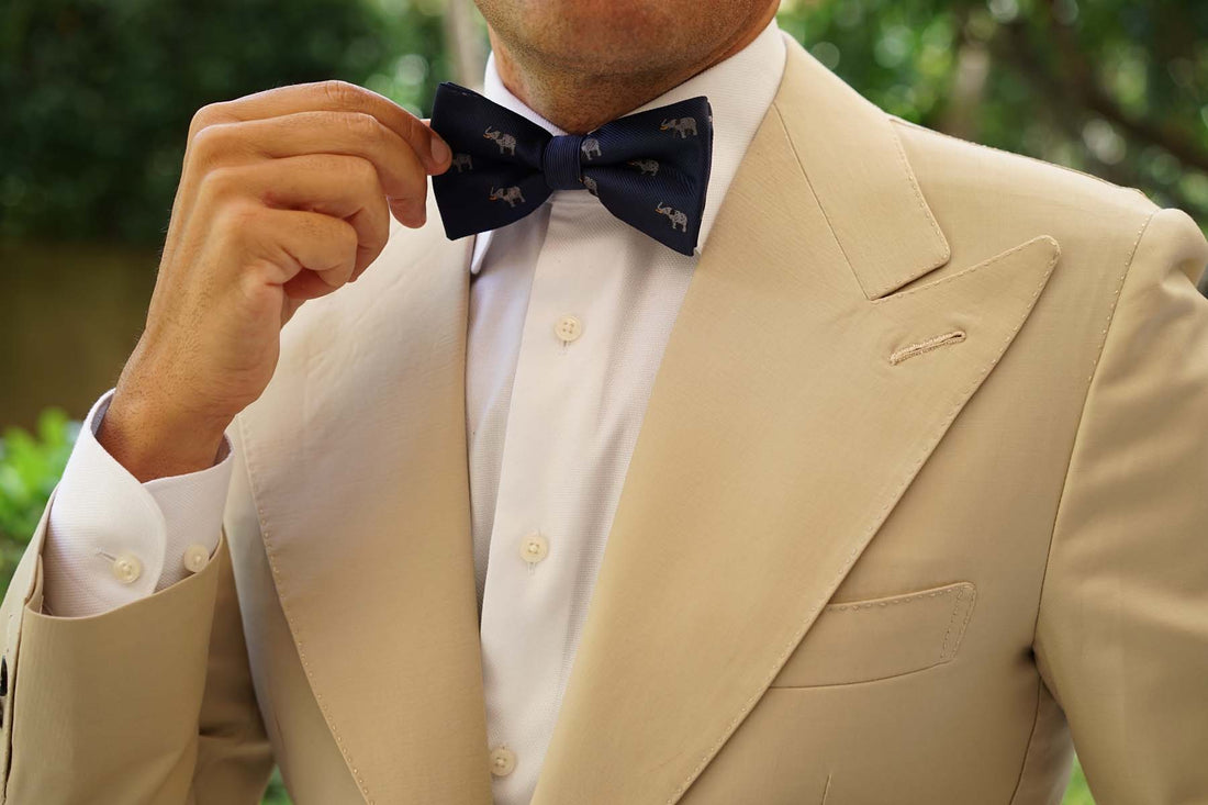 Our hand-sewn method allows the Indian Elephant Pre tied Bowtie to show extraordinary detail as there is little machinery used in the crafting of this tie. Touches such as these make all the difference. Indian Elephants are ‘mega herbivores’ and can eat over 100kg of plant material each day. Inspired by the large and loveable elephant, our Indian Elephant Bow Tie exudes sophistication and is hand cut and sewn on a classic navy backing. Designed exclusively by The Brothers at OTAA.
