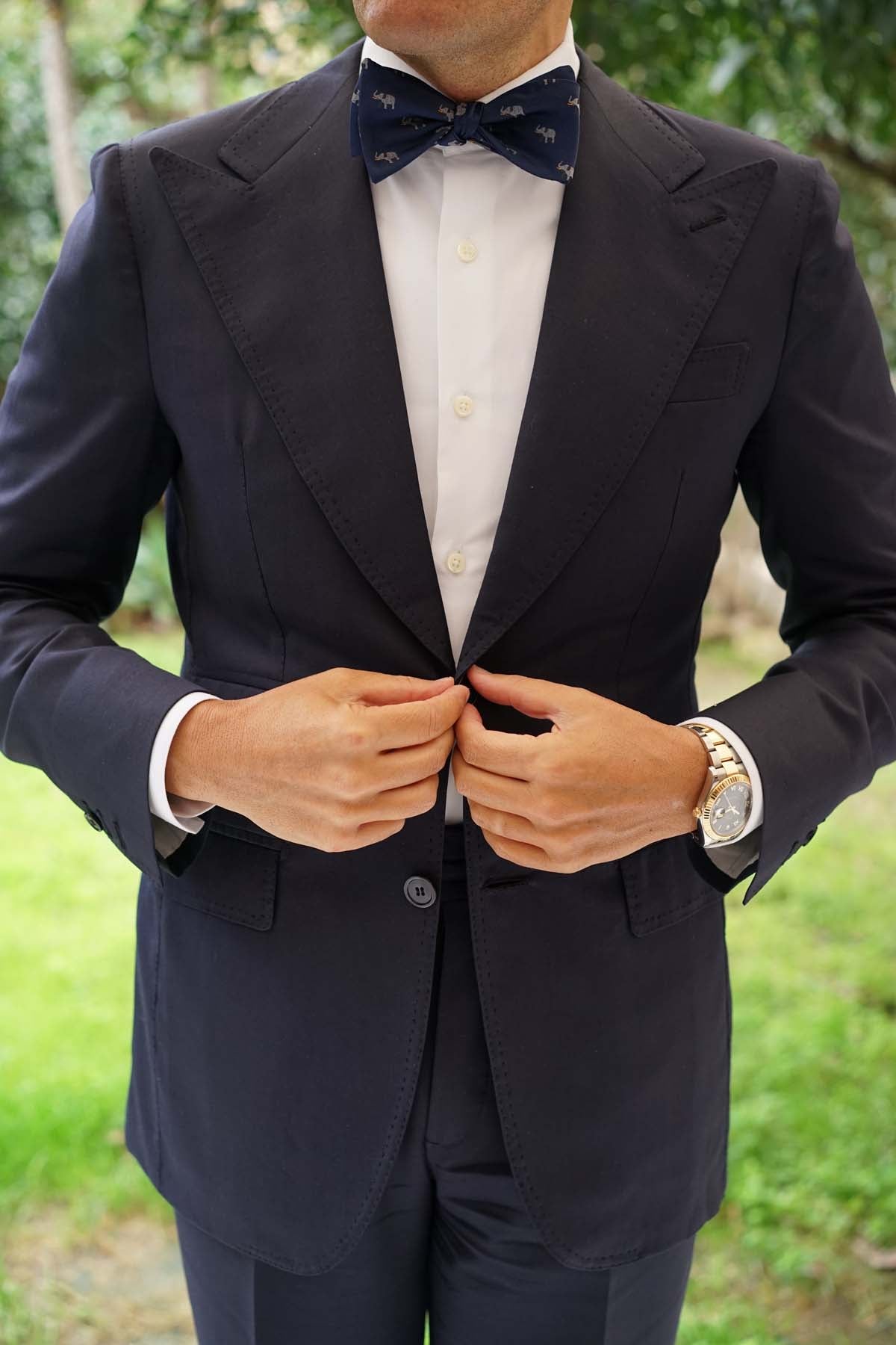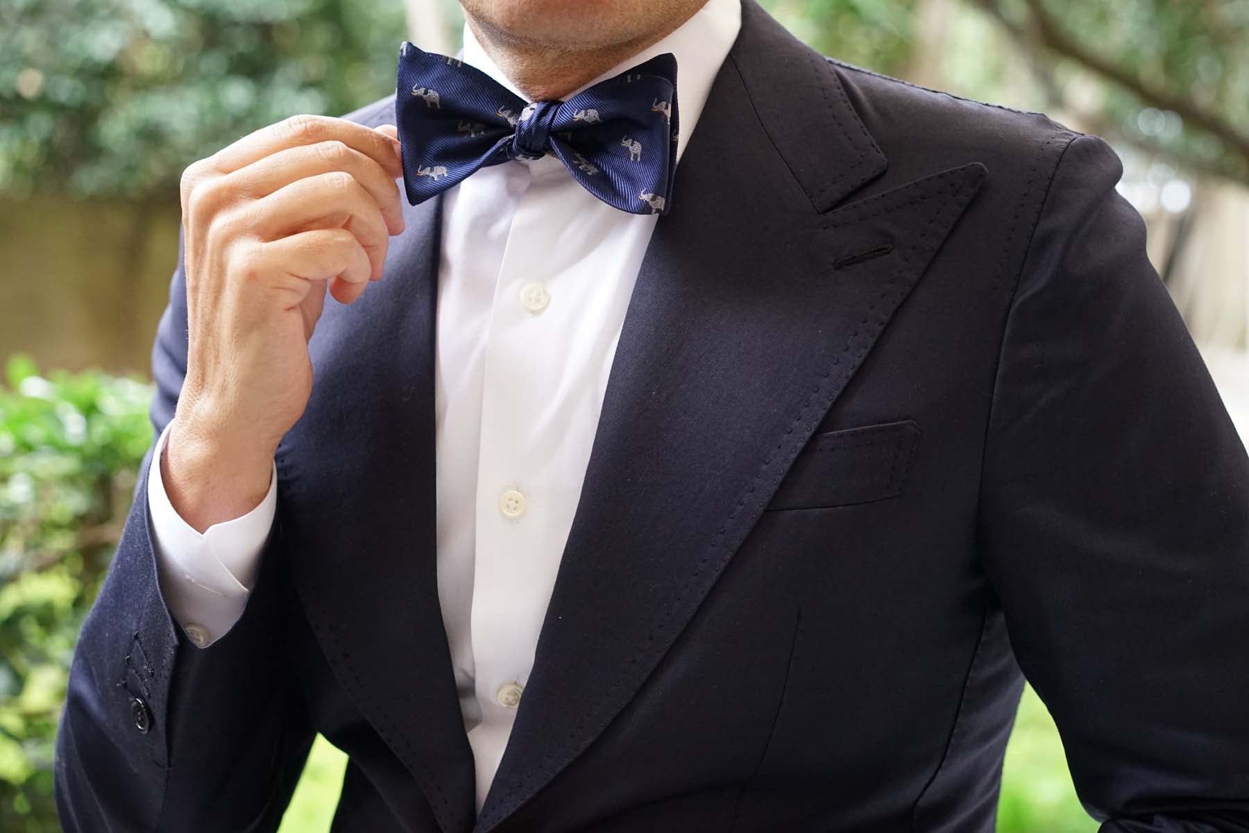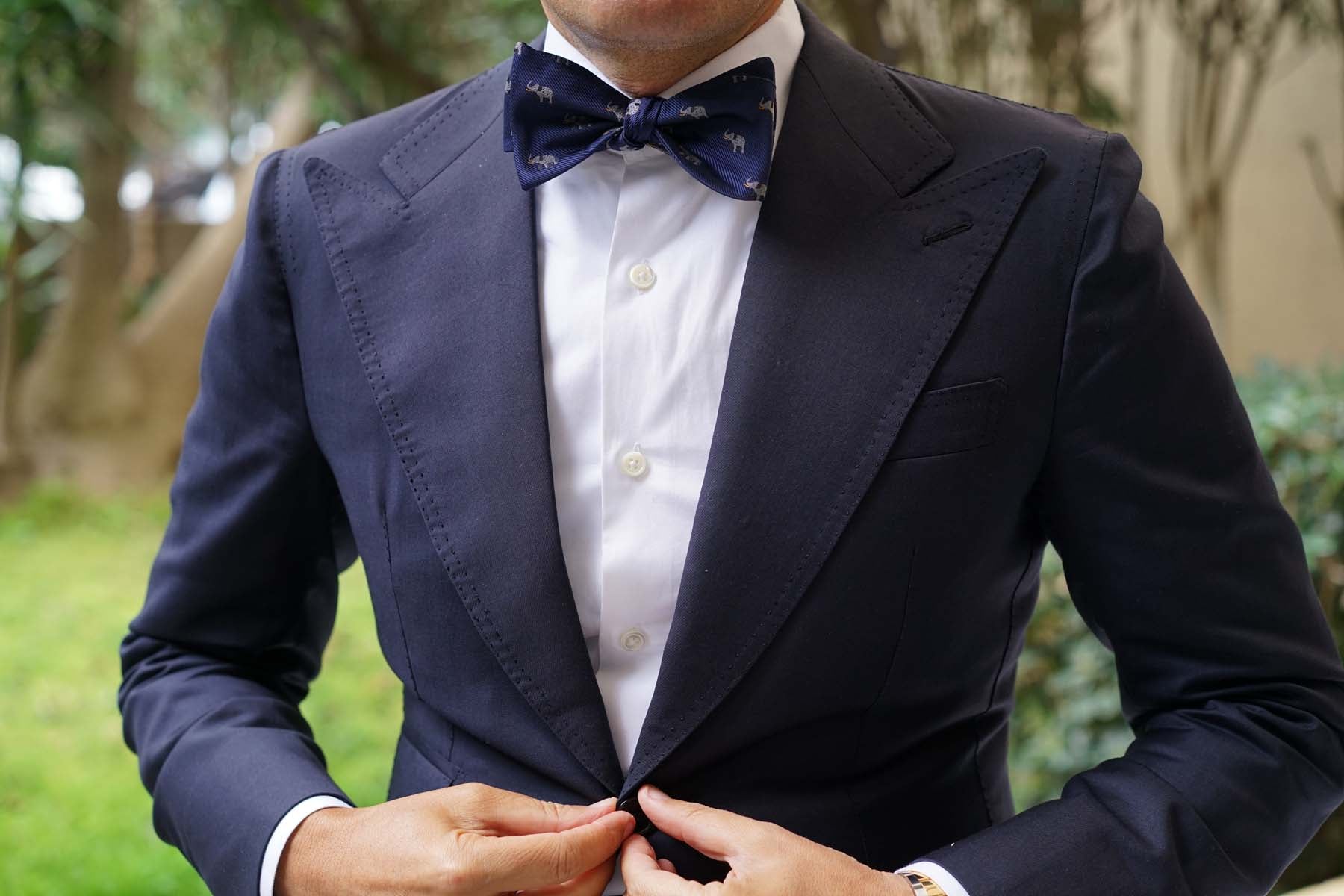 Our hand-sewn method allows the Indian Elephant Self Tie Bowtie to show extraordinary detail as there is little machinery used in the crafting of this tie. Touches such as these make all the difference. Indian Elephants are ‘mega herbivores’ and can eat over 100kg of plant material each day. Inspired by the large and loveable elephant, our Indian Elephant Self Bow Tie exudes sophistication and is hand cut and sewn on a classic navy backing. Designed exclusively by The Brothers at OTAA.