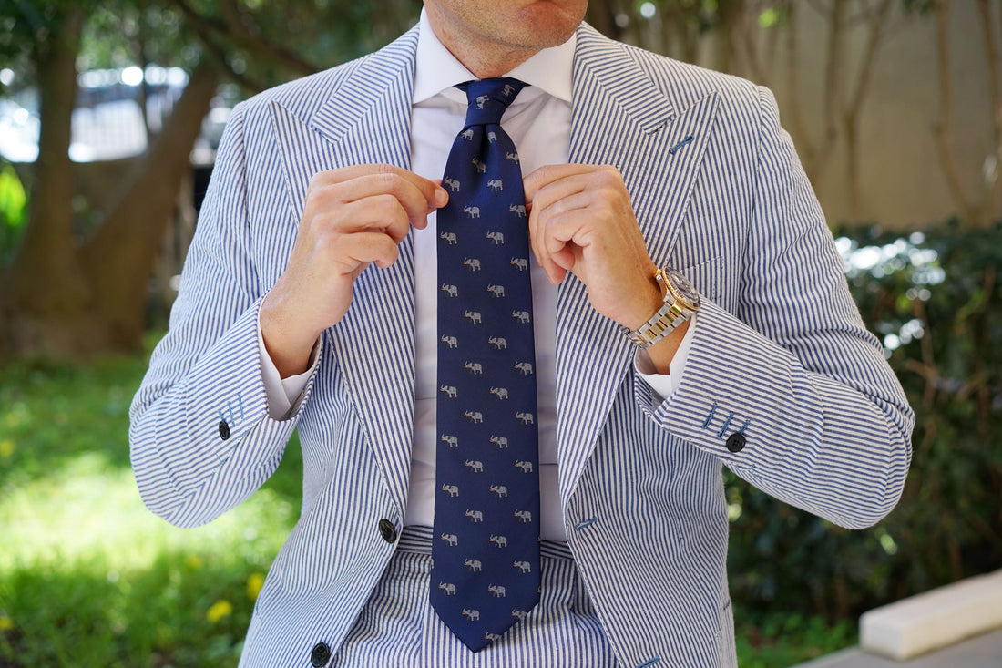 Our hand-sewn method allows the Indian Elephant Tie to show extraordinary detail as there is little machinery used in the crafting of this tie. Touches such as these make all the difference. Indian Elephants are ‘mega herbivores’ and can eat over 100kg of plant material each day. Inspired by the large and loveable elephant, our Indian Elephant Necktie exudes sophistication and is hand cut and sewn on a classic navy backing. Designed exclusively by The Brothers at OTAA.