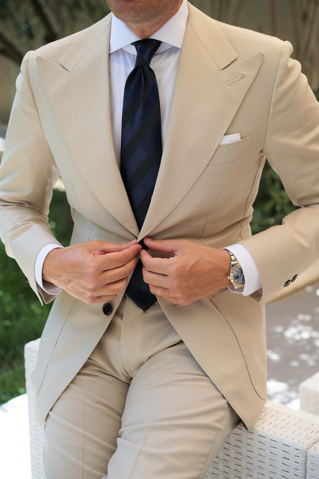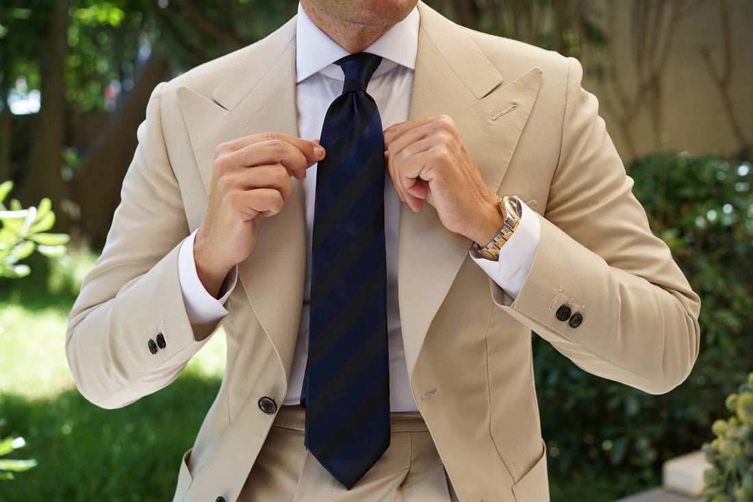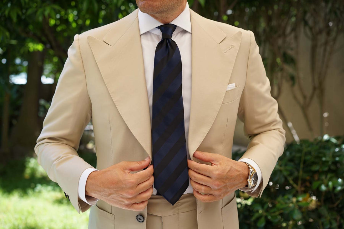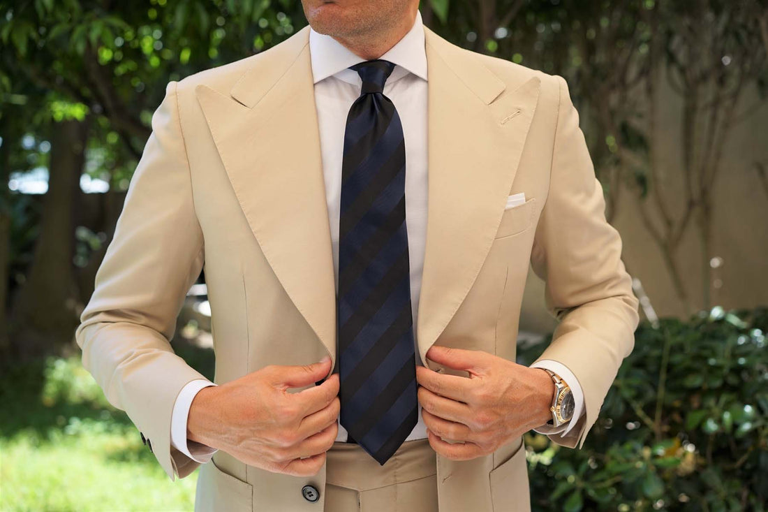 The Indigo Blue and Black Stripe Necktie carries itself with swagger and charm - like a certain sea captain sailing into the dock upon the tip of a sinking ship’s mast, deftly stepping ashore as the ship parks itself against the Caribbean sands below the surface. This may just be the best tie you’ve ever seen.