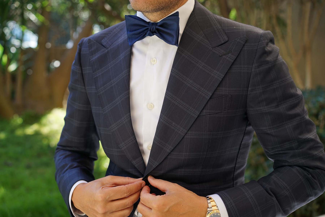 Indigo Navy Honeycomb Self Bow Tie Fabric