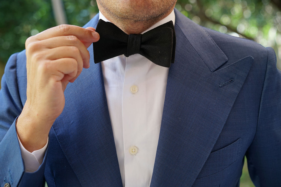 Enhancing the visual scope of the Self Tie Bow Tie are subtle variations in the texture and thickness of the hand-woven noir coloured thread. The linen fabric offers the perfect balance of texture and softness and will leave the Ink Black Slub Linen Untied Bow Tie your next magnificent staple fashion choice.
