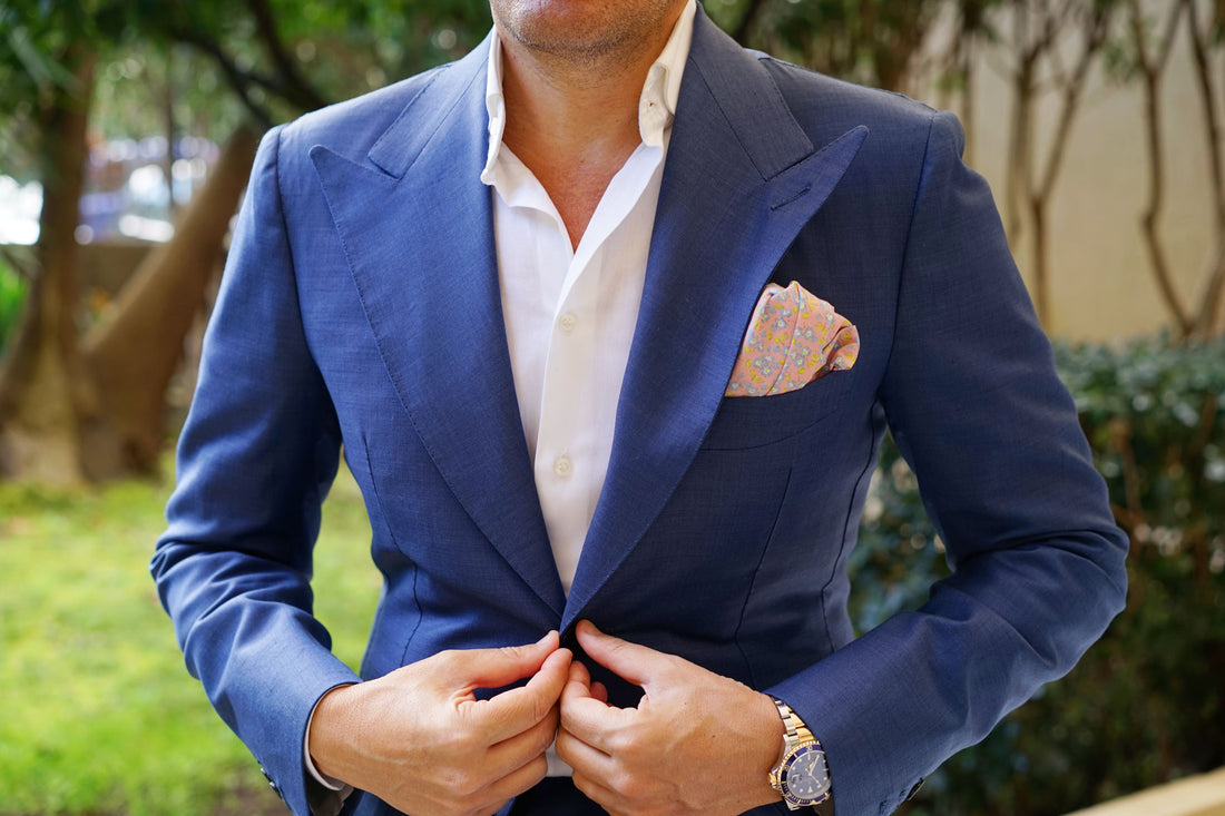 The Isle of Skye Peach Floral Pocket Square is pure dead brilliant! Radiating cheerful verve with a playful floral motif designed to capture the charm of the wildflowers that cover the land connected to Scotland's northwest coast by bridge. The Isle of Skye has a reputation for its rolling mountainous landscapes, picturesque fishing towns and old castles. This Pocket Square will serve to build your reputation for being picturesque.