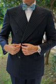 Isola Comacina Blue Paisley Bow Tie offers a contemporary attitude to your tailored looks. Isola Comacina is an island of Milan’s Lake Como and stands as a renowned destination for aristocrats and wealthy elites since Roman Times. Home to lush forestry and ebullient blue waterscapes, Isola Comacina is an exotic natural masterpiece to behold. The sensibility of this Italian destination is echoed through the exquisite features of OTAA’s Isola Comacina Blue Paisley Pre-tied Bowtie.