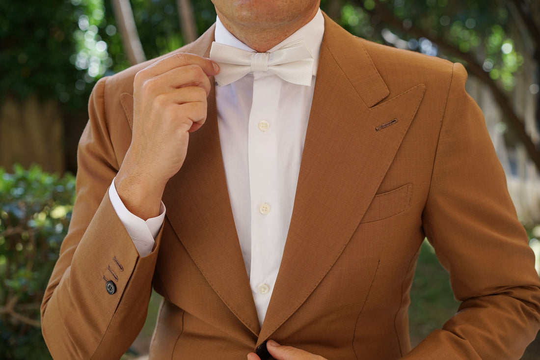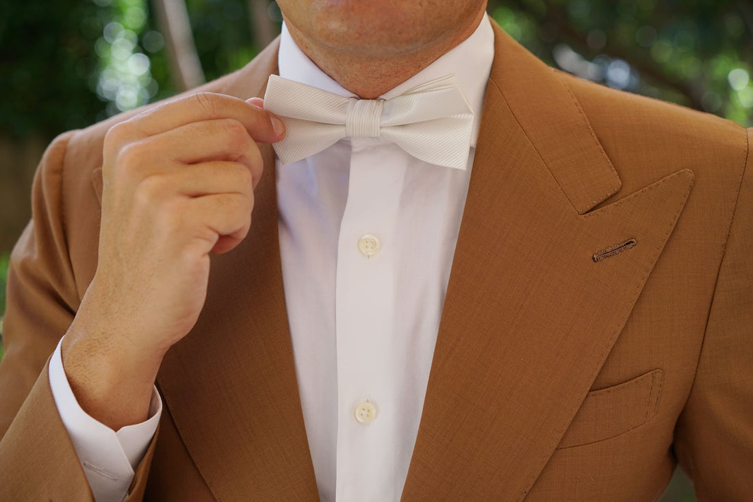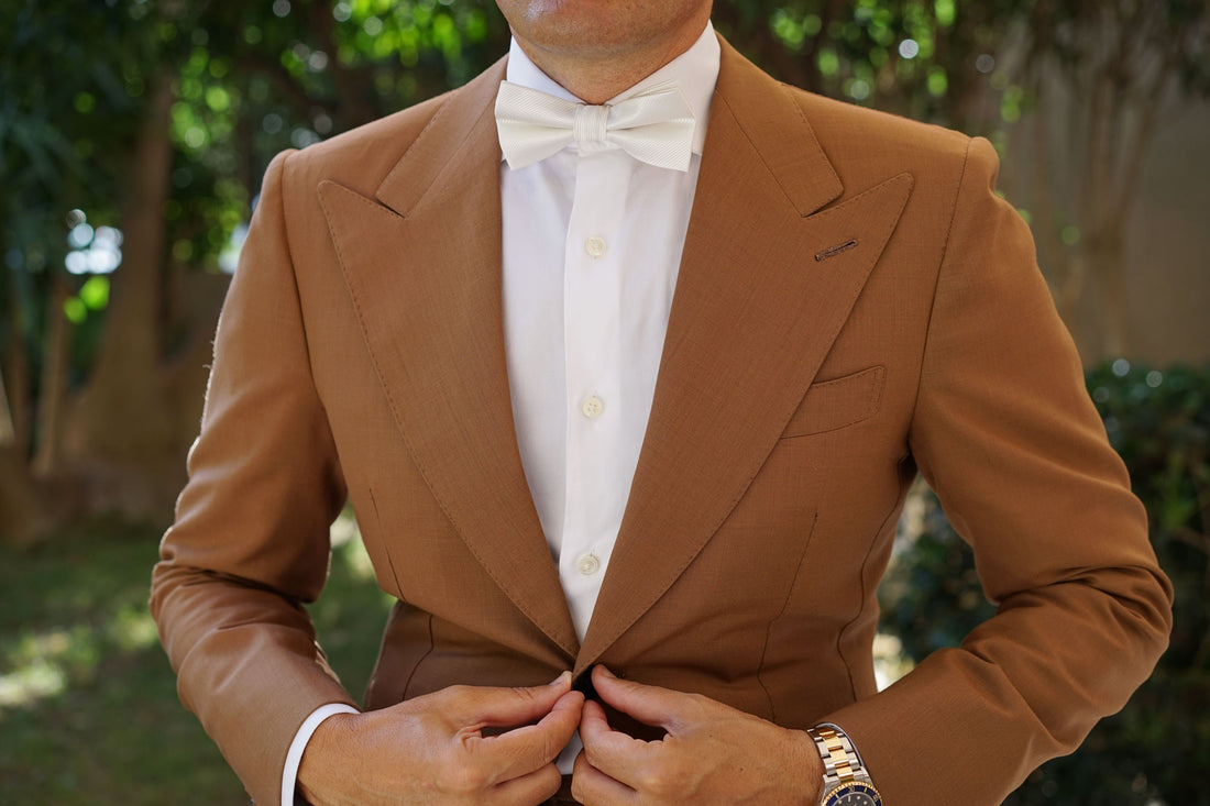 The Ivory Crisp Twill Bow Tie is an ornate and elegant piece of attire, championing class and excellence. The Ivory trim of lavish satin is exclusively prepared, cut and sewn solely by hand, by the captains of class - The Brothers at OTAA, to imbue your combination with a hint of classic charm.